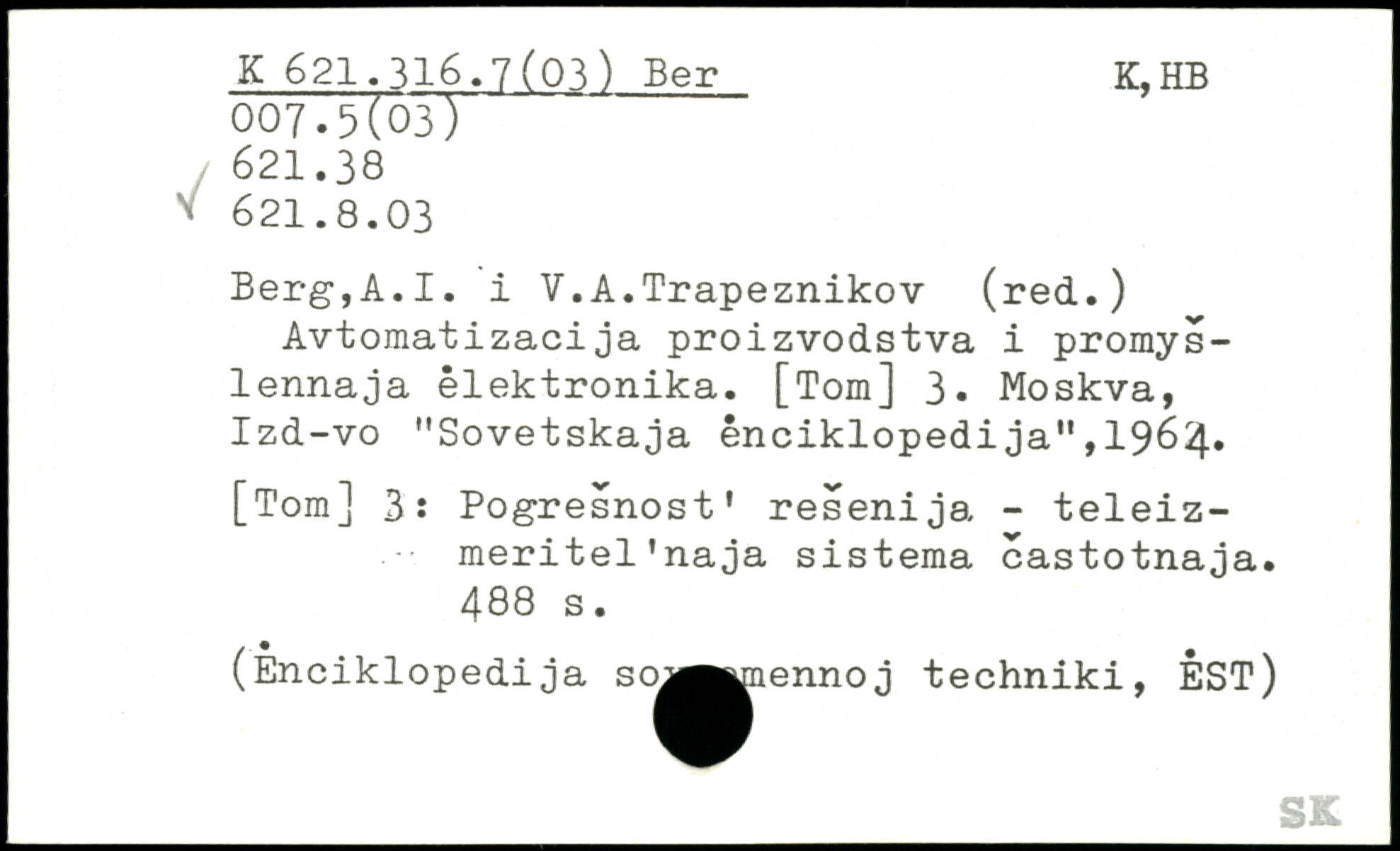 Avtomatizacija proizvodstva i promys-lennaja êlektronika. [Tom] 3, Moskva, Izd-vo "Sovetskaja ênciklopedija",1964. [Tom] 3: Pogresnost' resenija - teleiz- meritel'naja sistema castotnaja.