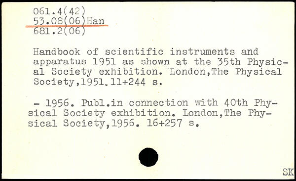 Handbook of scientific instruments and apparatus 1951 as shown at the 35th
