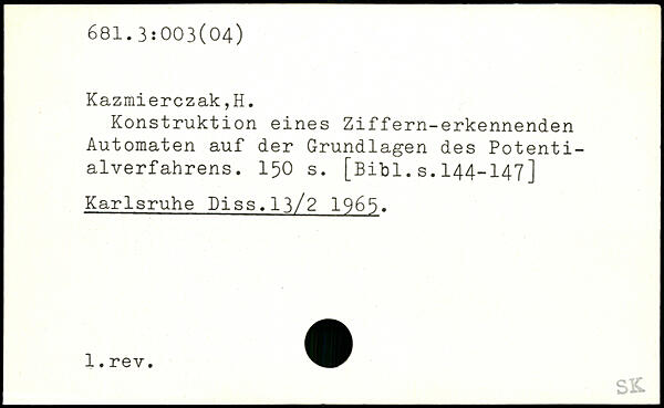 Konstruktion eines Ziffern-erkennenden Automaten auf der Grundlagen des Potentialverfahrens.