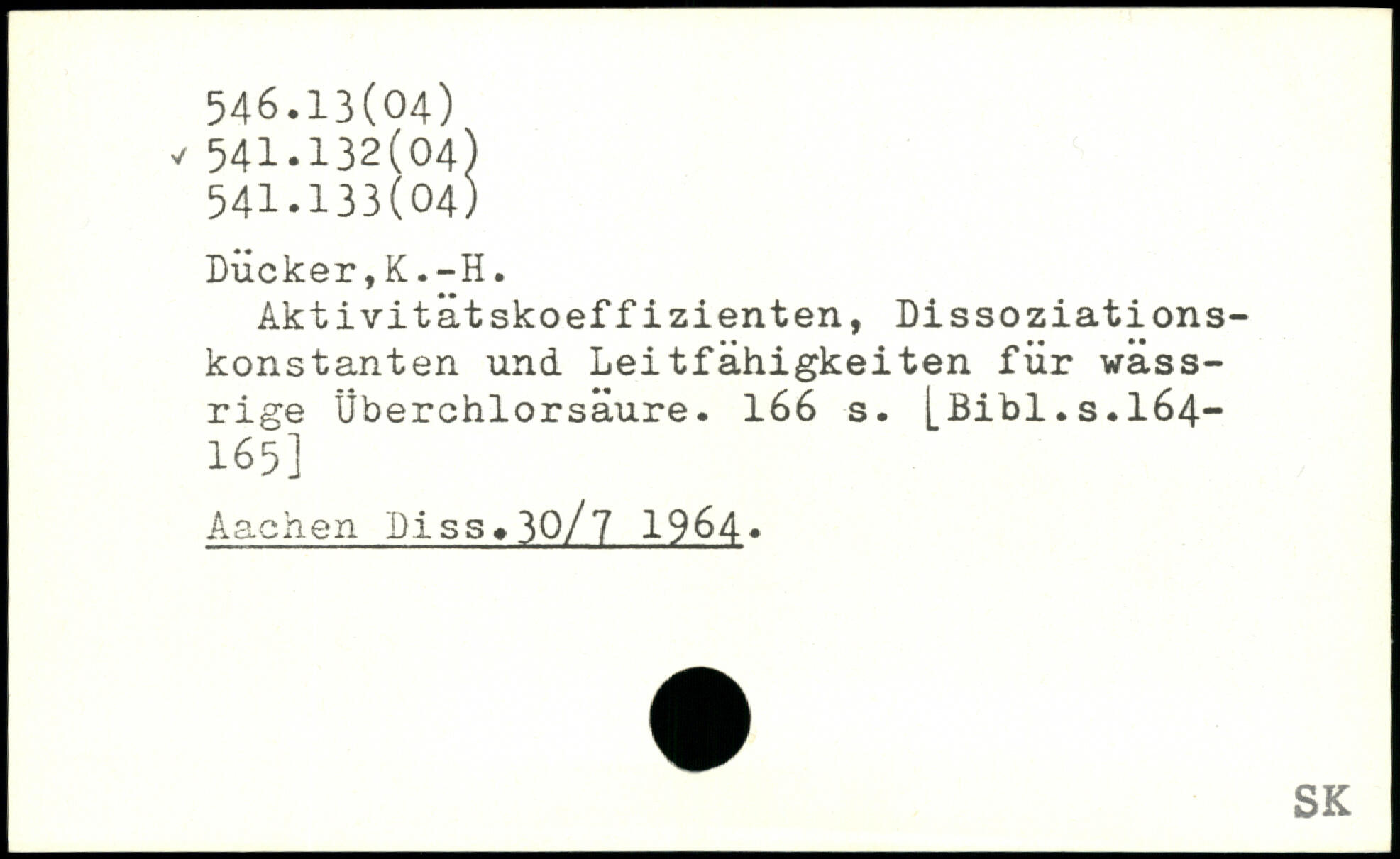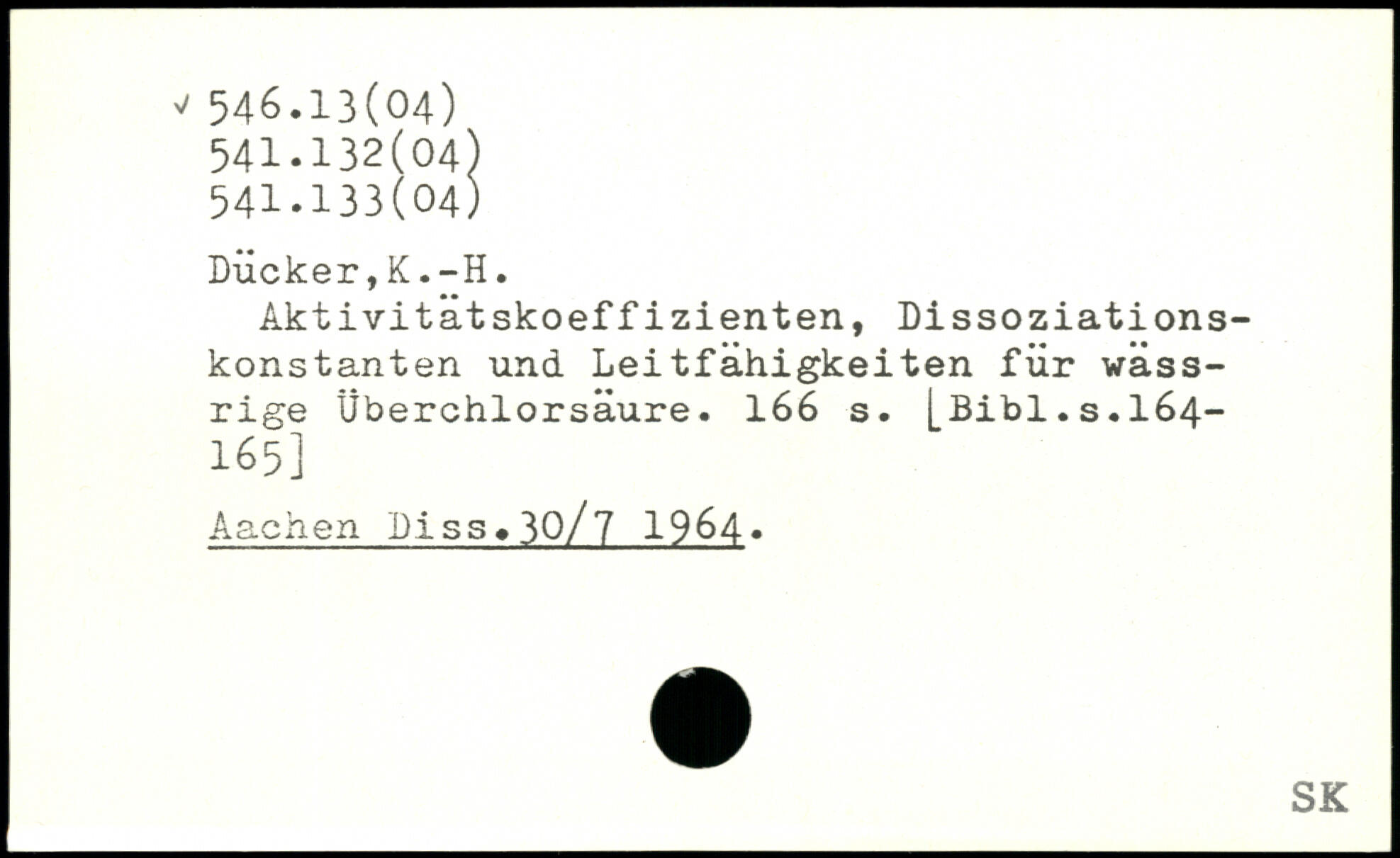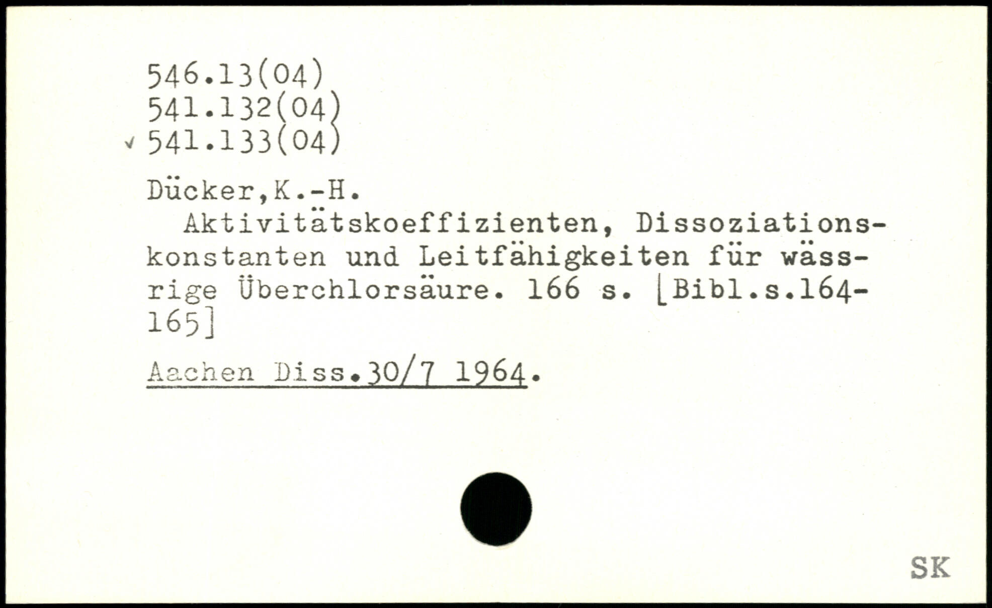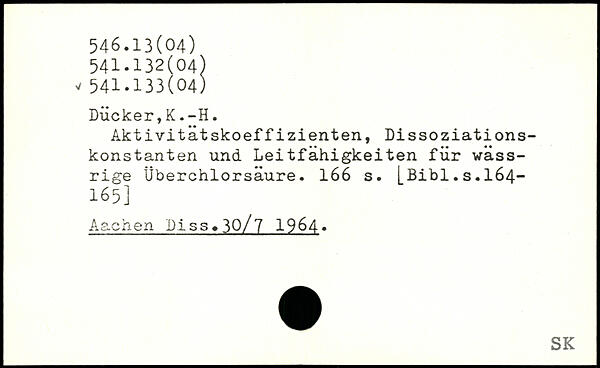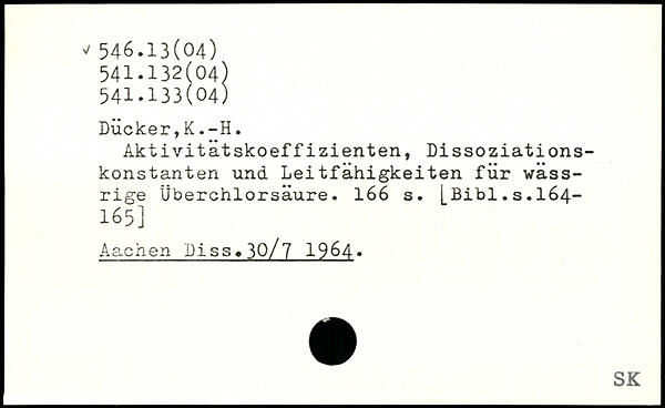 Aktivitätskoeffizienten, Dissoziationskonstanten und Leitfähigkeiten für wässrige Überchlorsäure.
