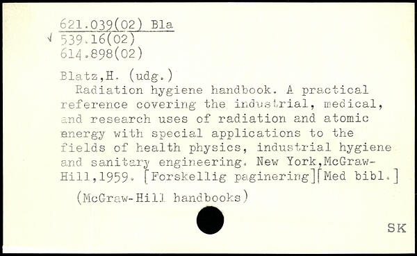 Radiation hygiene handbook. A presetical reference covering the industrial, medical, and research uses of radiation and atomic energy with special applications to the fields of health physics, industrial hygiene and sanitary engineering.