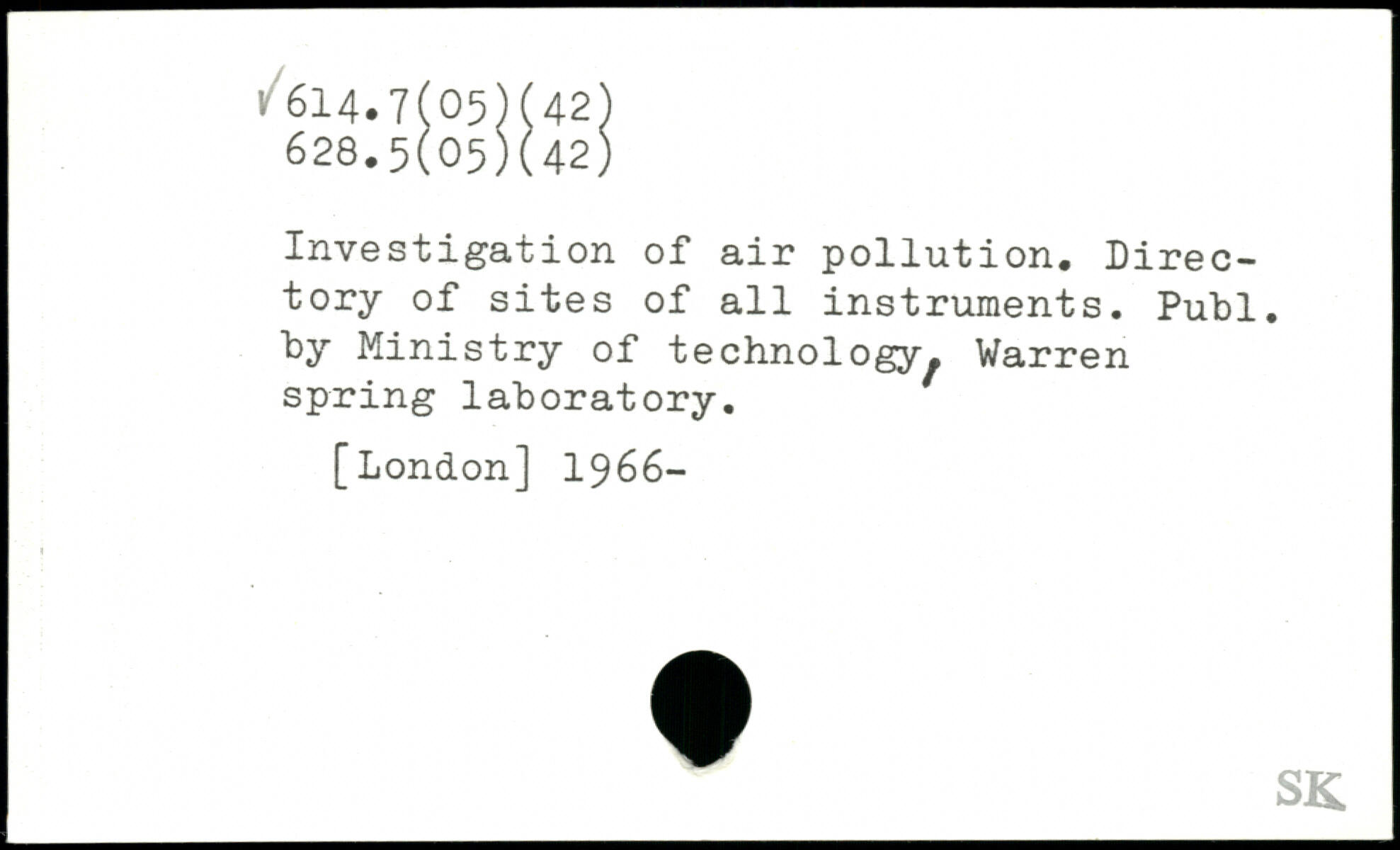 Investigation of air pollution. Directory of sites of all instruments.