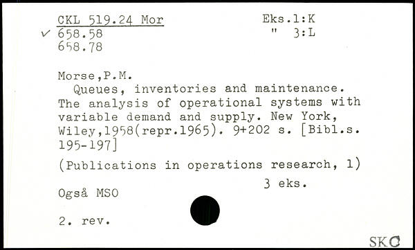 Queues, inventories and maintenance. The analysis of operational systems with variable demand and supply.