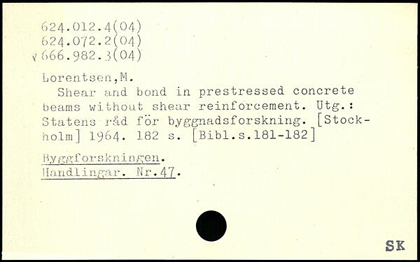Shear and bond in prestressed concrete beams without shear reinforcement. Utg.: Statens rad for byggnadsforskning.