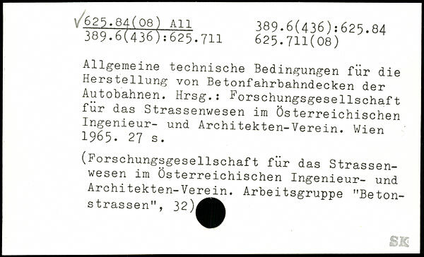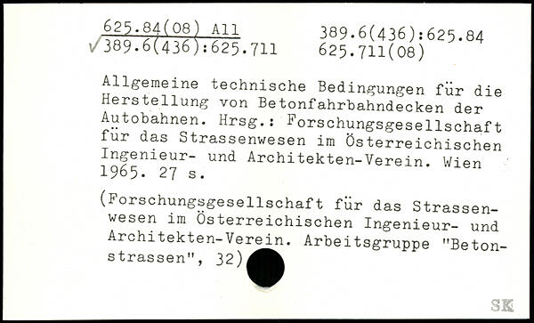 Allgemeine technische Bedingungen für die Herstellung von Betonfahrbahndecken der Autobahnen. Hrsg.; Forschungsgesellschaft für das Strassenwesen im Österreichischen und Architekten-Verein. Wien (Forschungsgesellschaft für das Strassen-wesen im Österreichischen Ingenieur- und | Architekten-Verein. Arbeitsgruppe "Beton-strassen", 32)^^^
