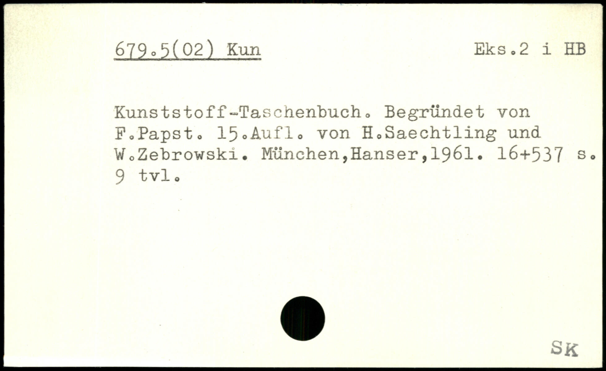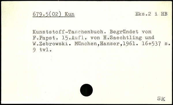 Kunststoff“Taschenbuch, Begründet von PoPapsto 15oAuflo von HoSaechtling und ;