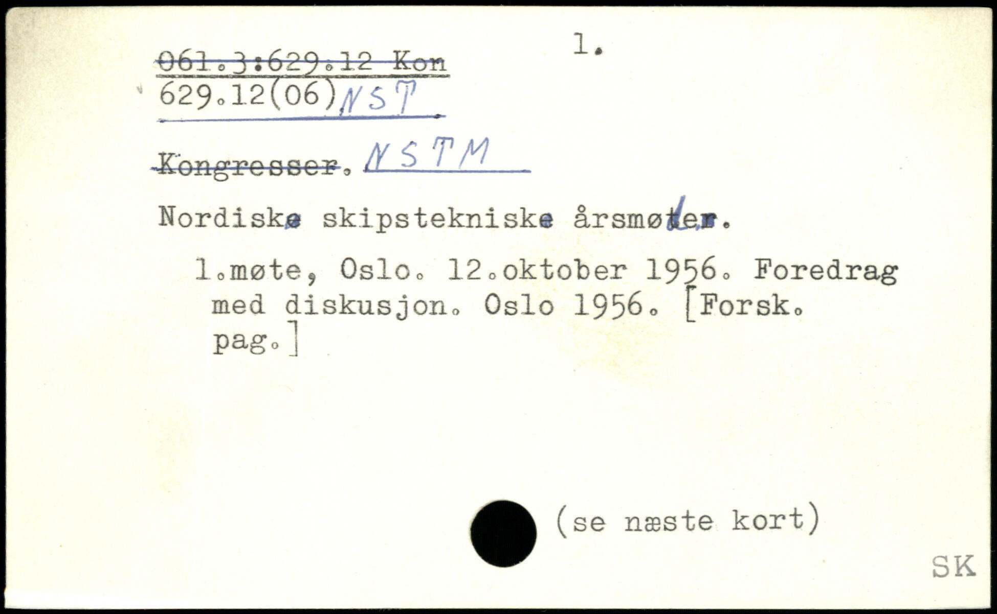 ■Kongre ose-F-, ; - Nordisks skipstekniske årsmøde,,. l0møtes Oslo o 12 o oktober 1956. Foredrag med diskusjon, Oslo 1956o [Forsk, pago j .(se næste kort)