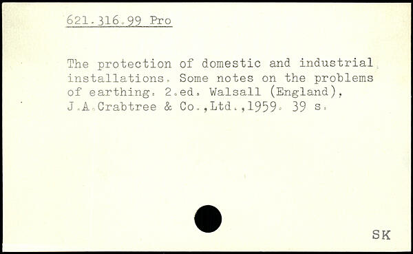 The protection of domestic and industrial installations, Some notes on the problems of earthing, 2,ed, Walsall (England), J-A Crabtree & Co,,Ltd,,1959-