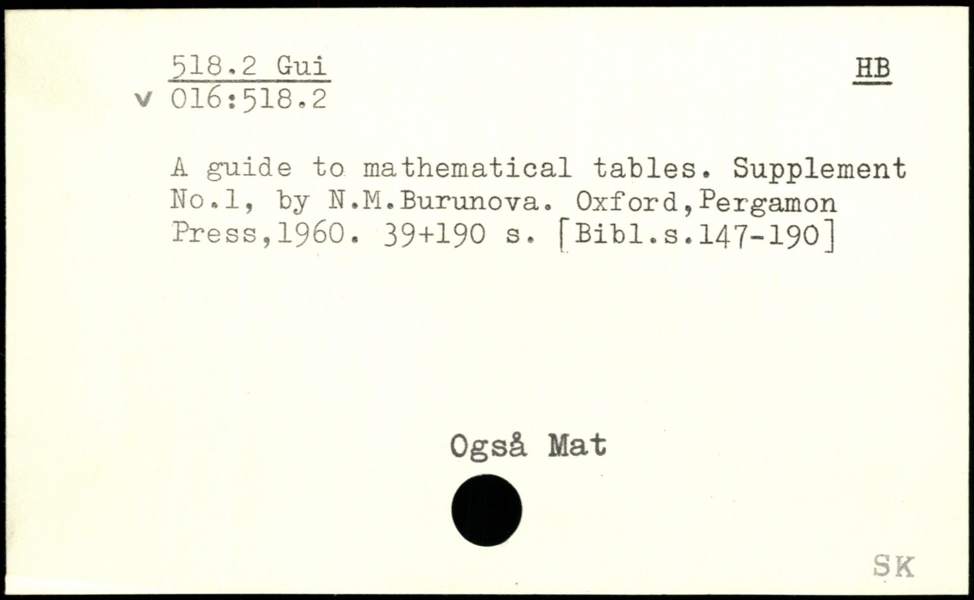 A guide to mathematical tables. Supplement No.l, by N.M.Burunova.