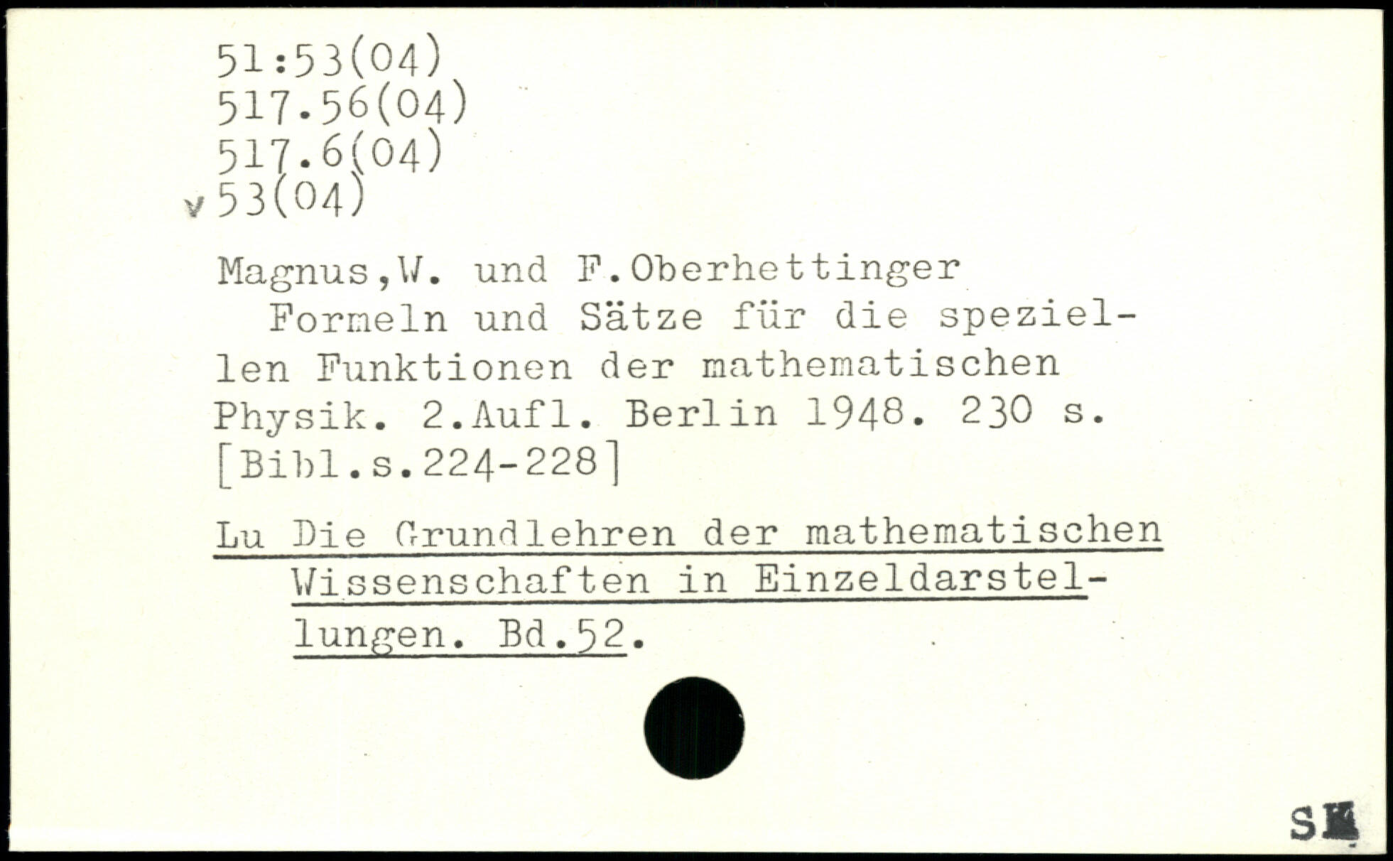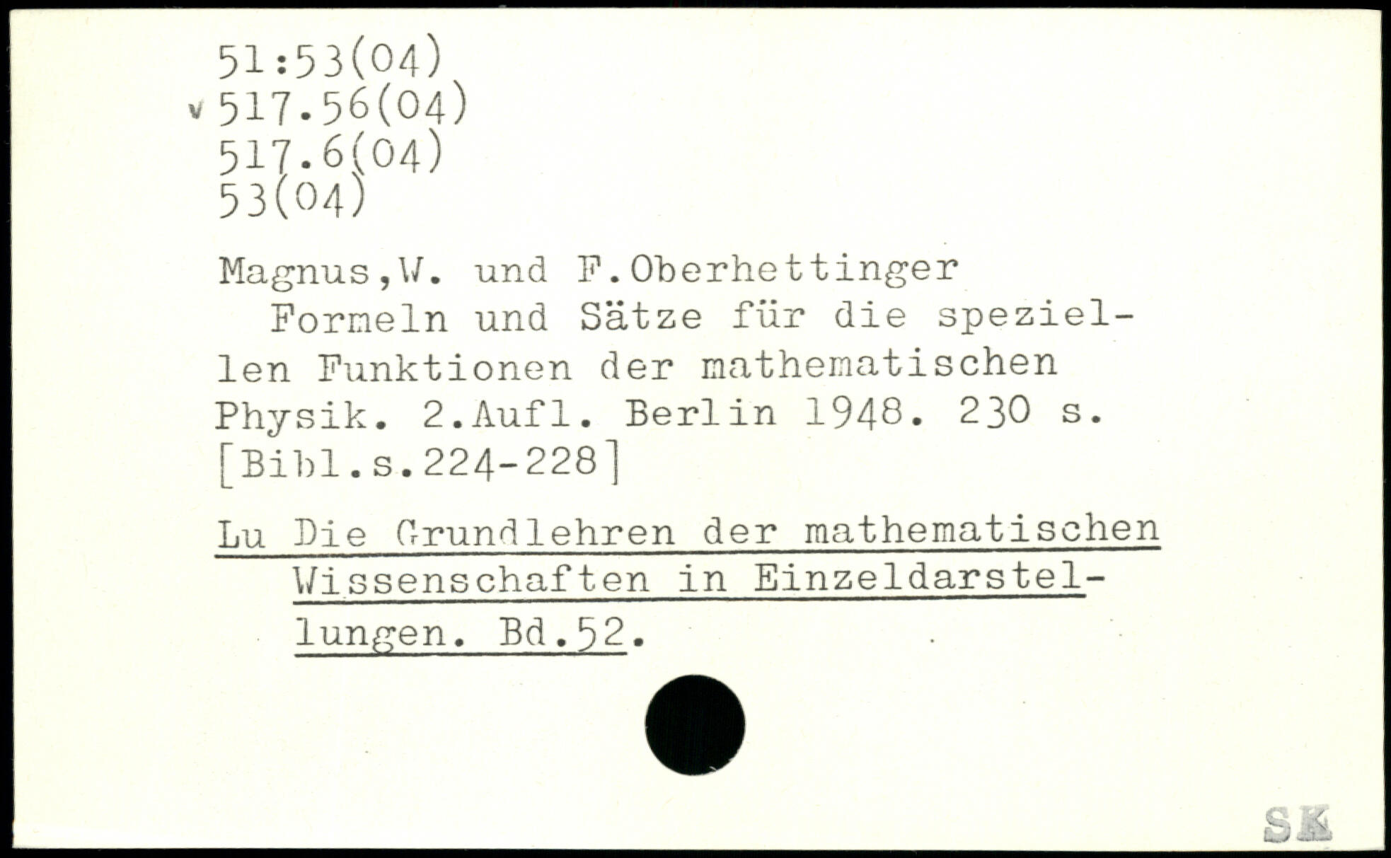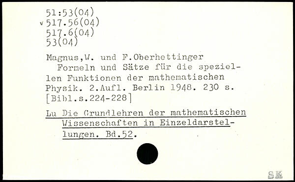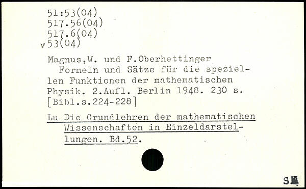 Formeln und Sätze für die speziellen Funktionen der mathematischen Physik.