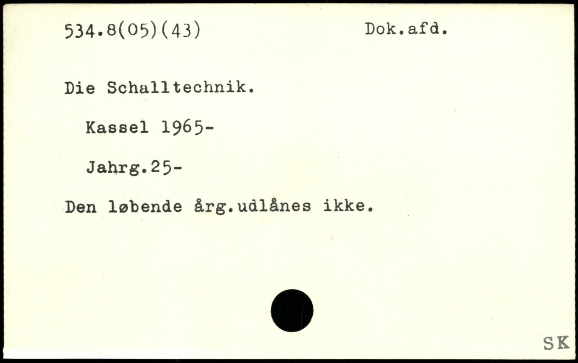 Die Schalltechnik. Kassel 1965-Jahrg.25- Den løbende årg.udlånes ikke.