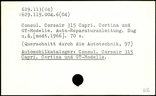 Consul. Corsair 315 Capri. Cortina und. GT-Modelle. Auto-Reparaturanleitung. Zug u.ä.[modt.1966].