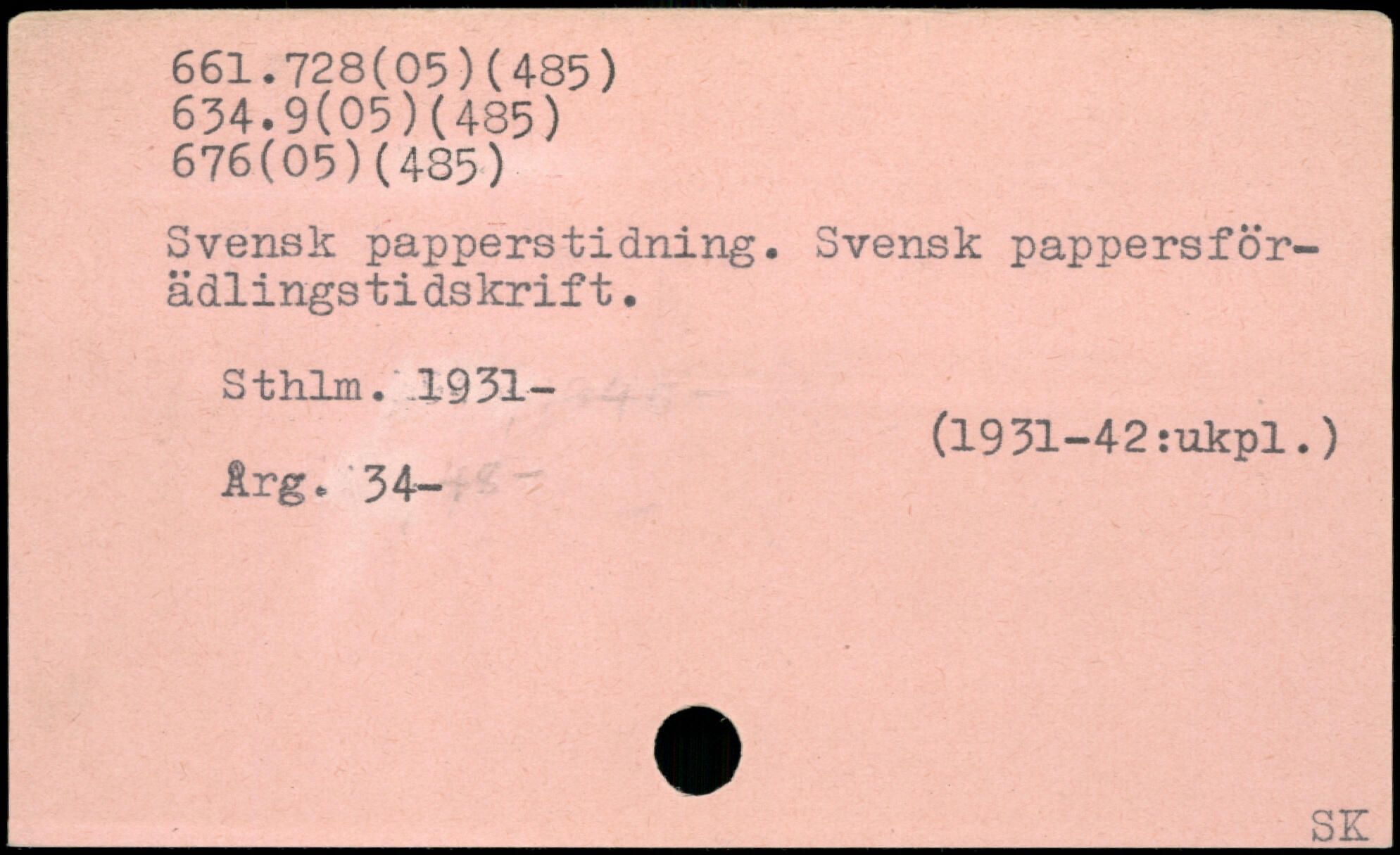 Svensk papperstidning. Svensk pappersför-ädlingstidskrift. Sthlm. .1931-