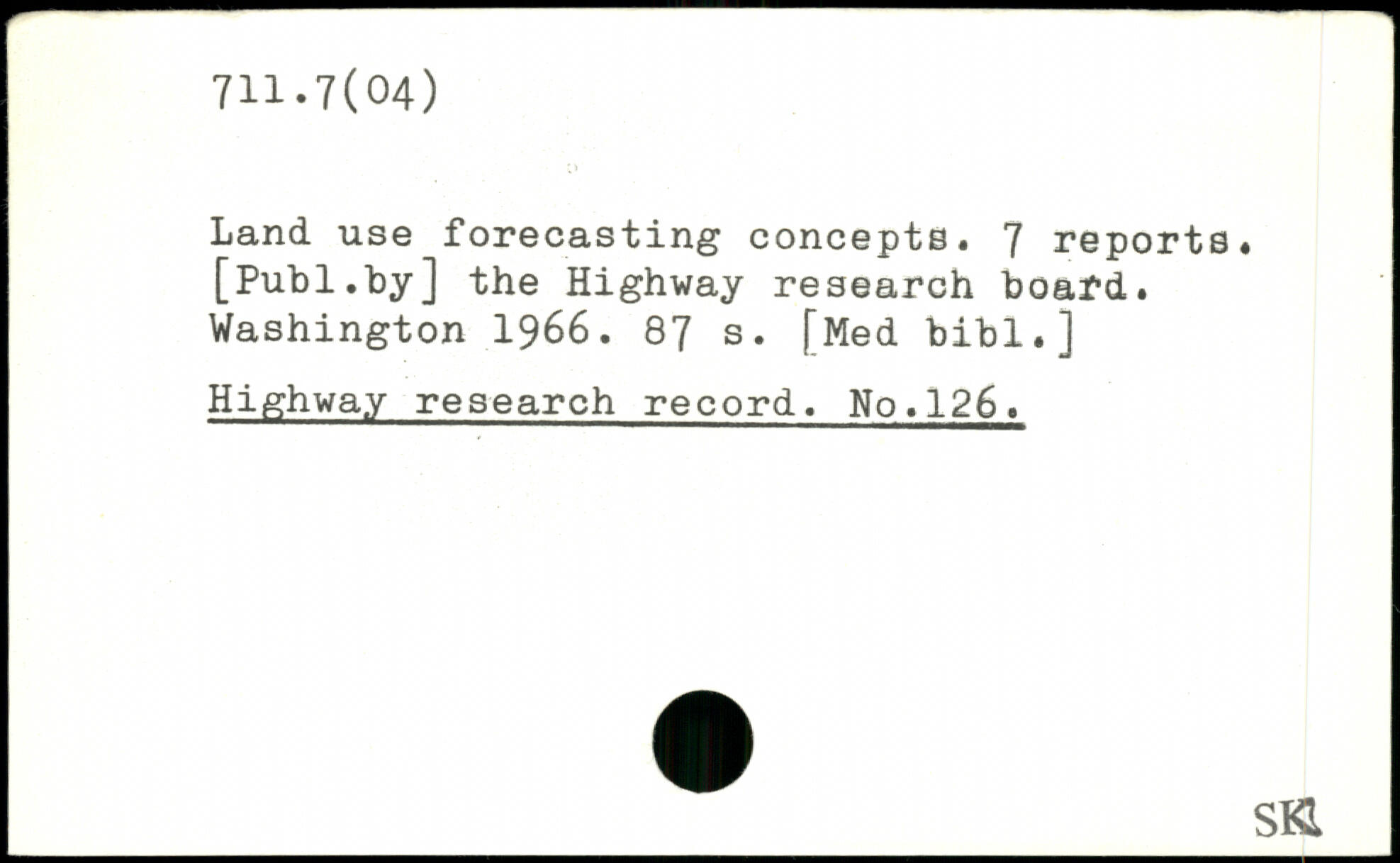Land use forecasting concepts. 7 reports.