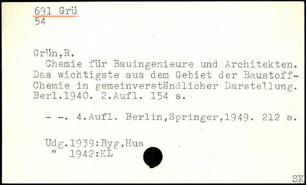 Chemie für Bauingenieure und Architekten. Bas wichtigste aus dem Gebiet der Baustoff-Chemie in gemeinverständlicher Barstellung. Berl.1940.