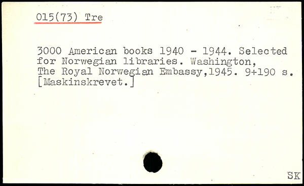 3000 American books 1940 - 1944. Selected for Norwegian libraries.