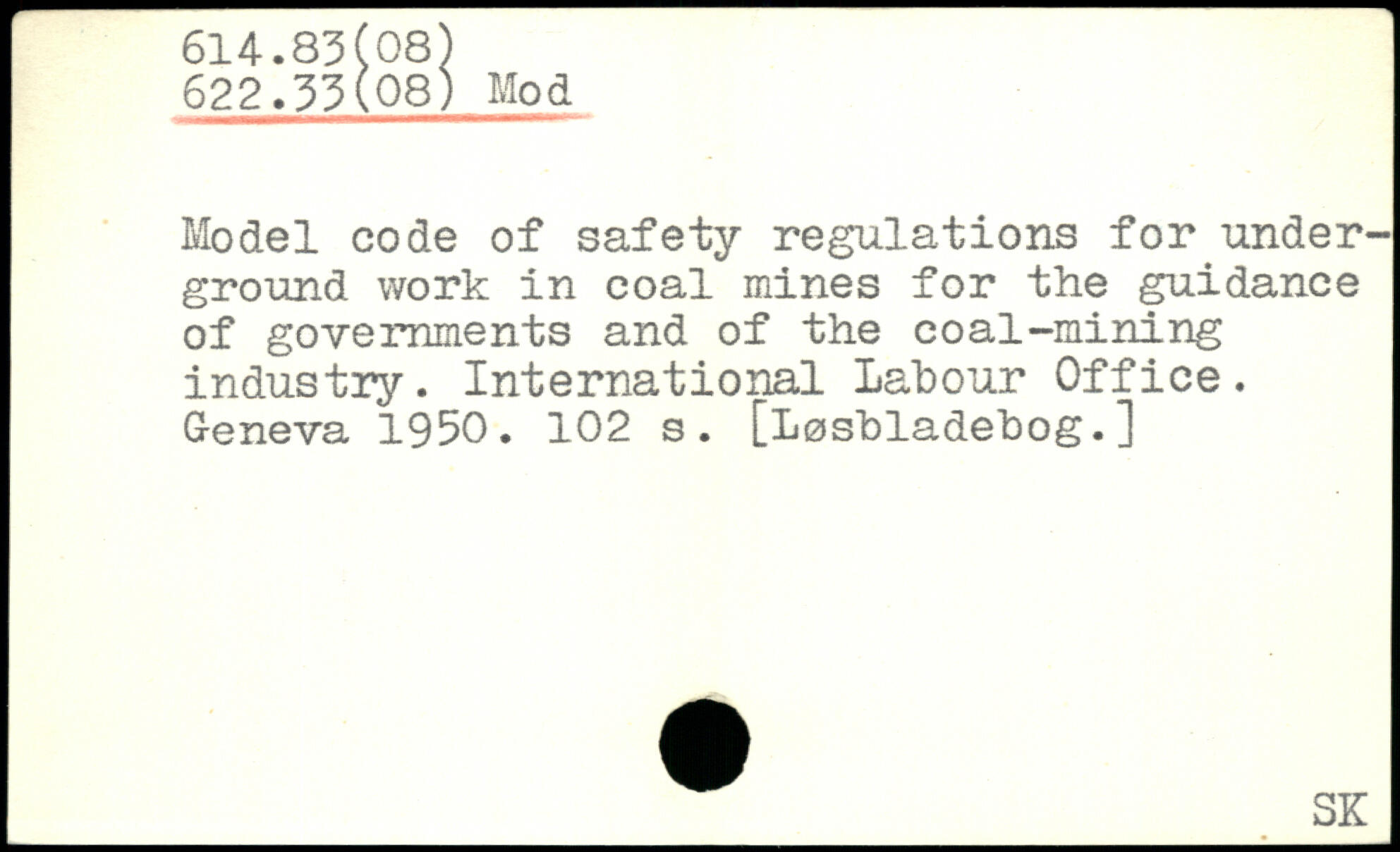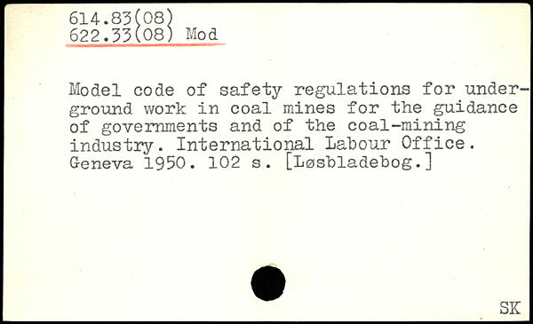 Model code of safety regulations for underground work in coal mines for the guidance of governments and of the coal-mining industry. International Labour Office.