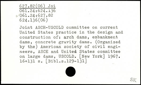 Joint ASCE-USCOLD committee on current United States practice in the design and construction of: arch dams, embankment dams, concrete gravity dams. (Organized by the) American society of civil engineers, ASCE and United States committee on large dams, USCOLD.