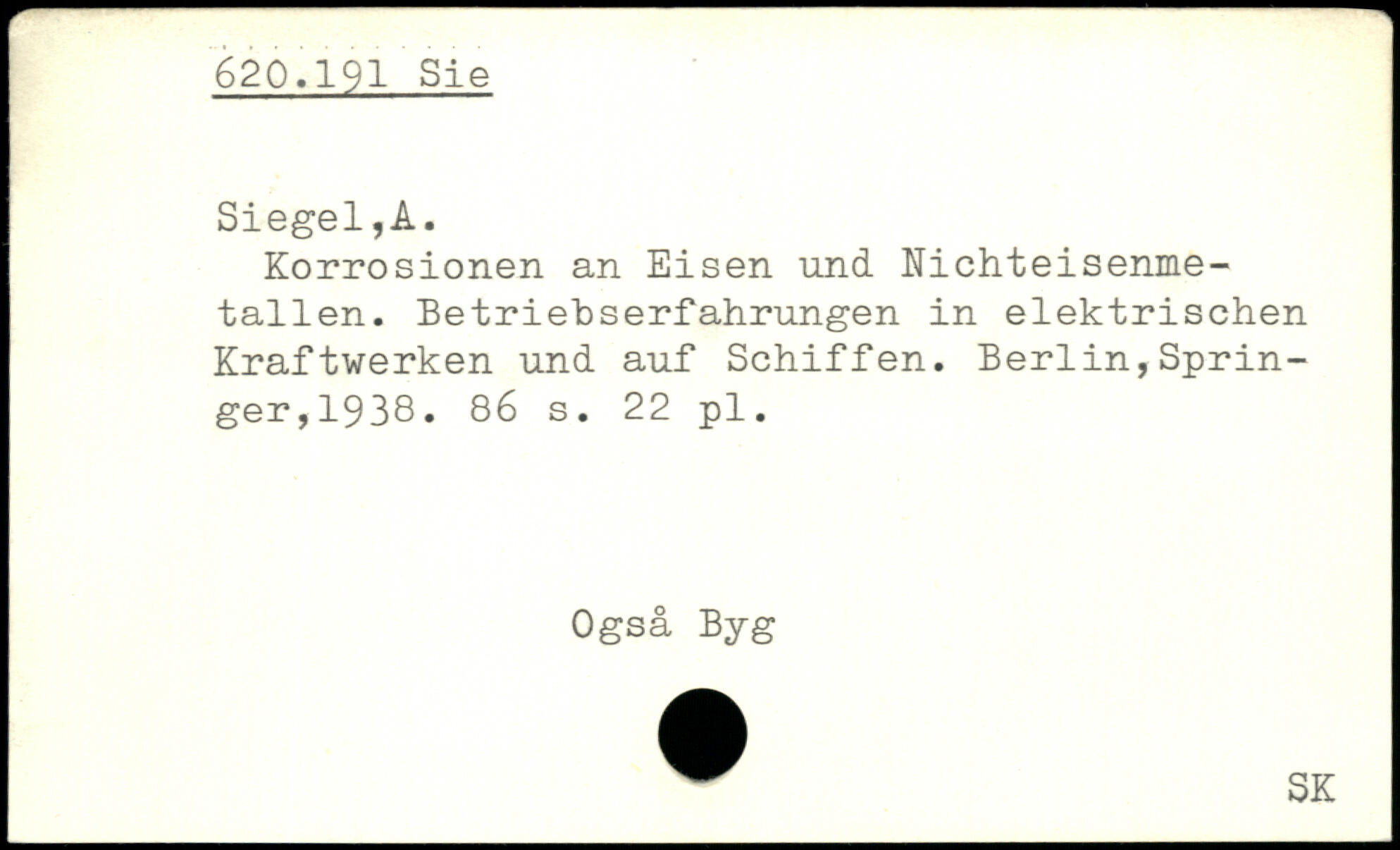 Korrosionen an Eisen und Nichteisenmetallen. Betriebserfahrungen in elektrischen Kraftwerken und auf Schiffen.