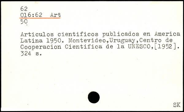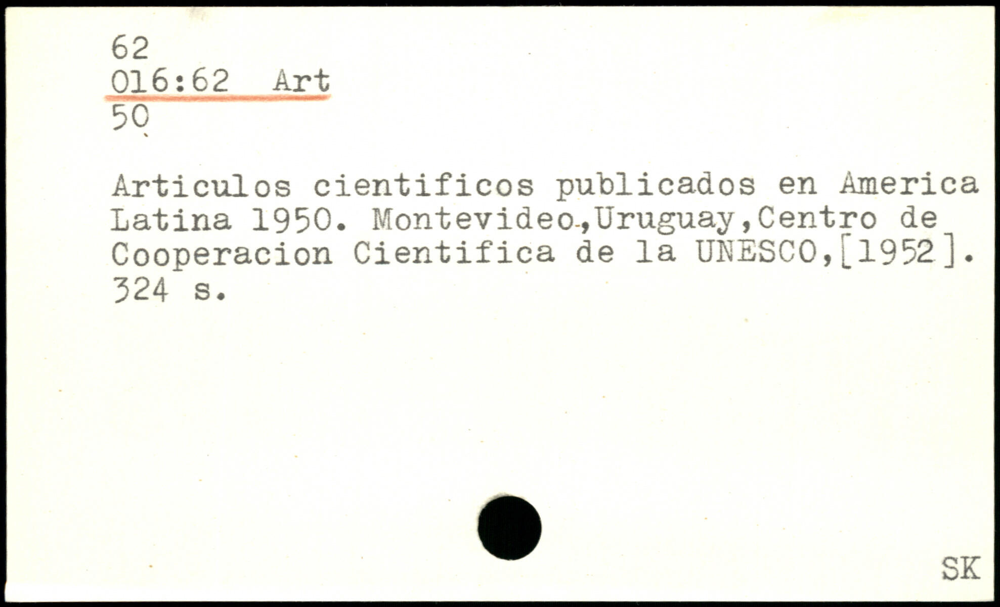 Articulos clentificos publicados en America Latina 1950. Montevideo-,Uruguay,Centro de Cooperacion Cientifica de la UNESCO,[1952].