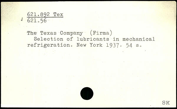 The- Texas Company (Firma) Selection of lubricants in mechanical refrigeration®