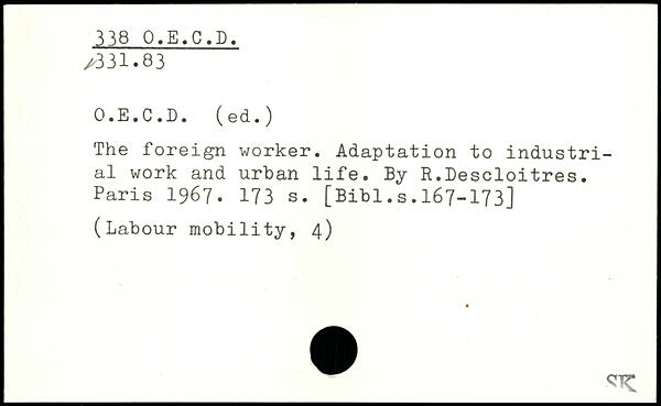 The foreign worker. Adaptation to industrial work and urban life. By R.Descloitres.