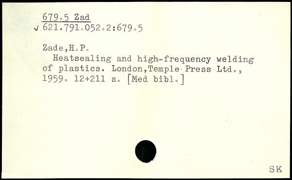 Heatsealing and high-frequency welding of plastics. London,Temple-Press Ltd,, 1959.