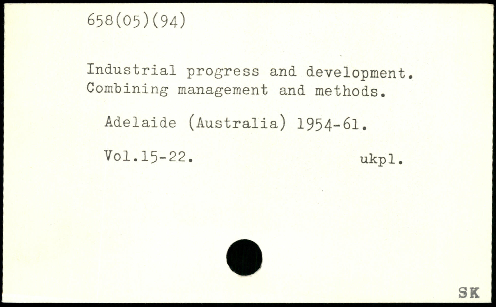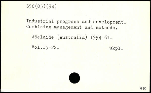 Industrial progress and development. Combining management and methods. Adelaide (Australia) 1954-61.