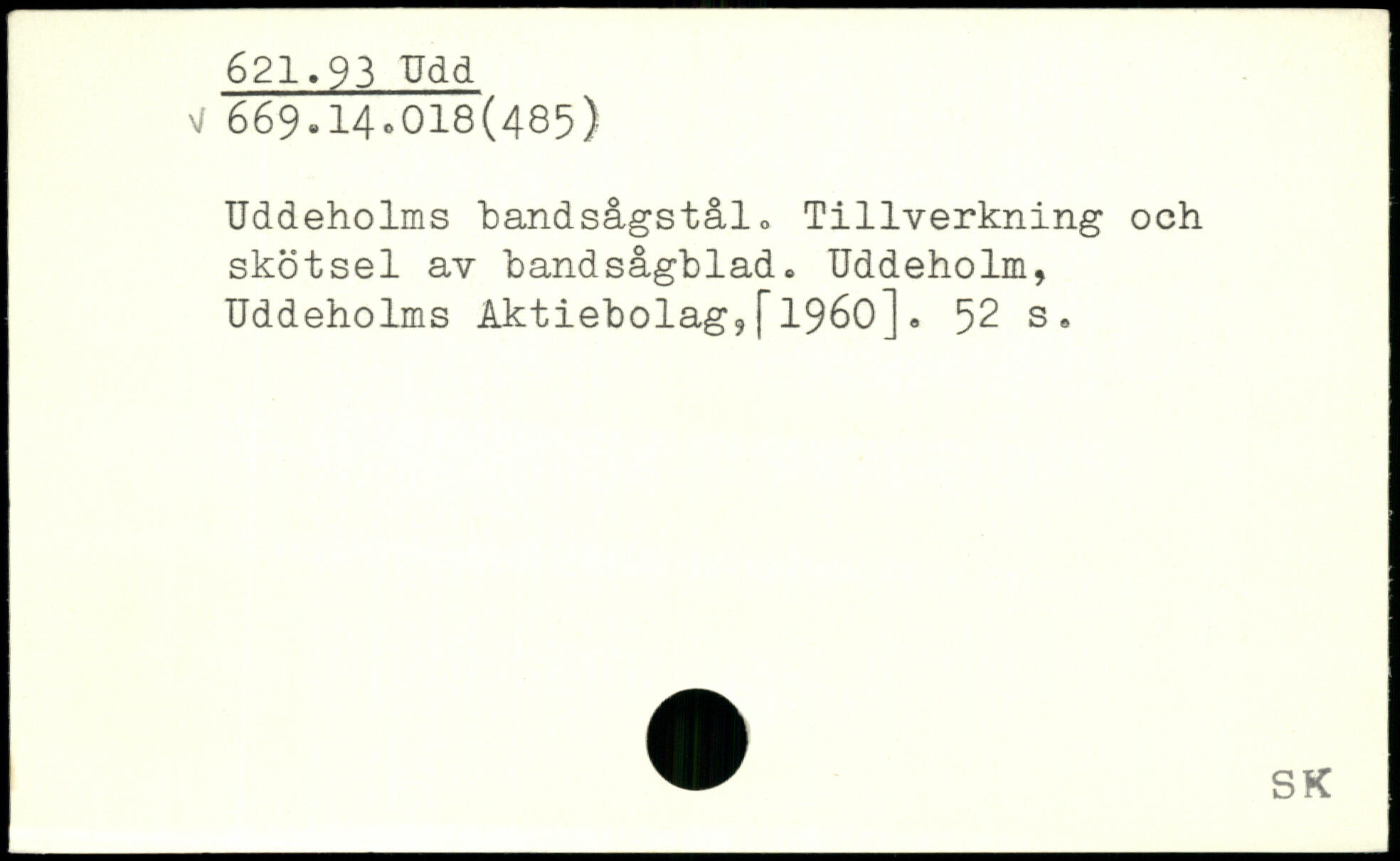 Uddeholms bandsågstål. Tillverkning och skötsel av handsågblad.