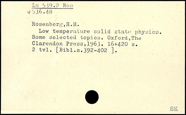 Low temperature solid state' physics. Some selected topics. Oxford,The Clarendon Press,1^63.