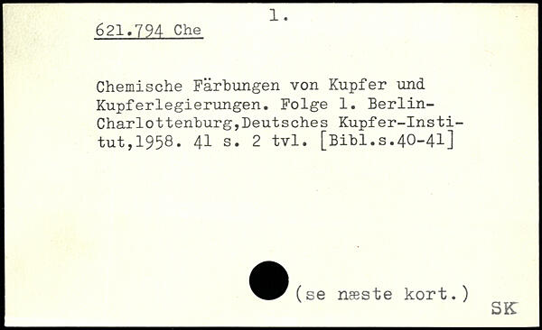 Chemische Färbungen von Kupfer und Kupferlegierungen. Folge 1.