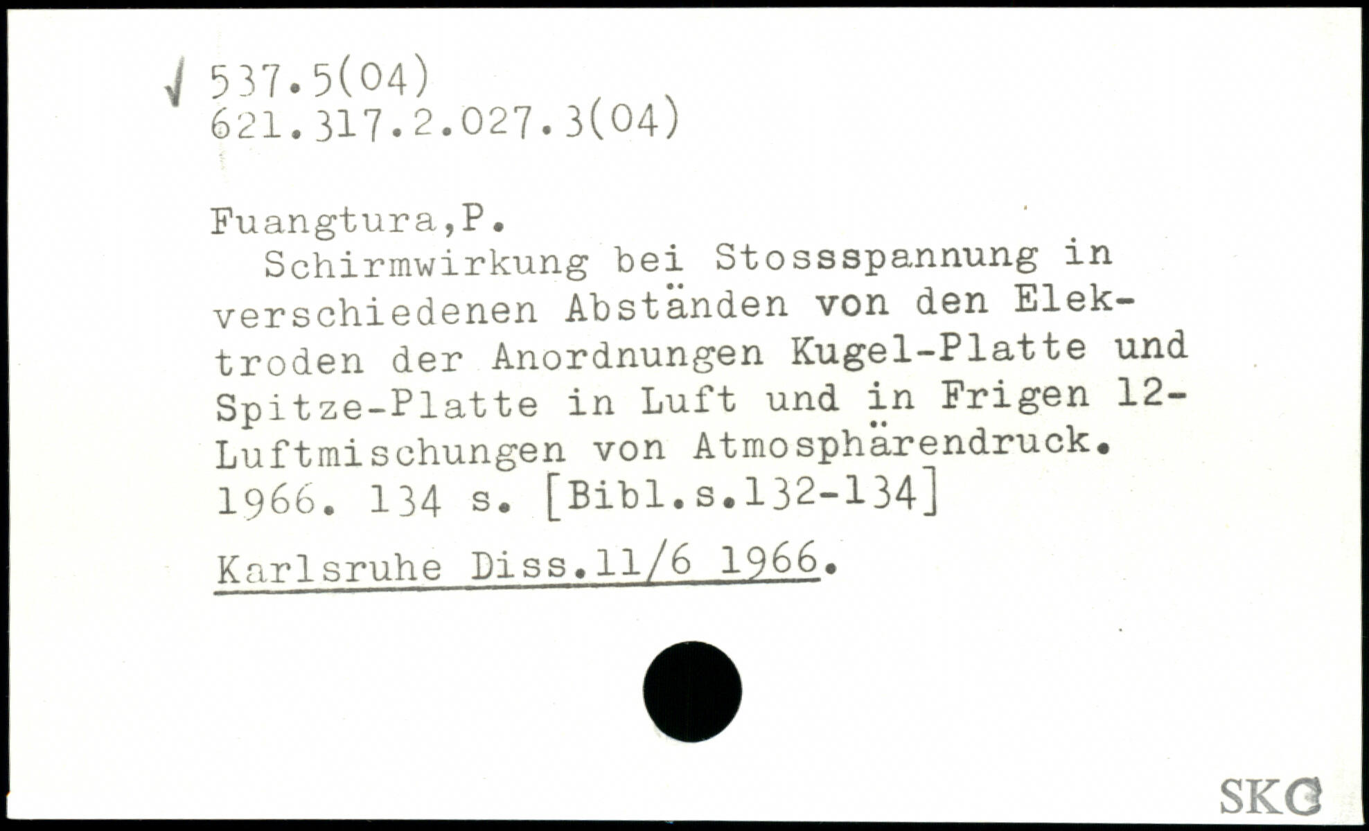 Schirmwirkung bei Stossspannung in verschiedenen Abstanden von den Elektroden der Anordnungen Kugel-Platte und Spitze-P1atte in Luft und in Frigen 12— Luftmischungen von Atmosphärendruck. 1966.