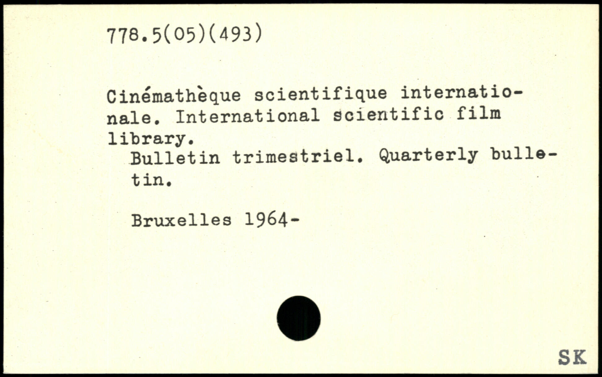Cinematheque scientifique internationale. International scientific film library. Bulletin trimestriel. Quarterly bulletin.