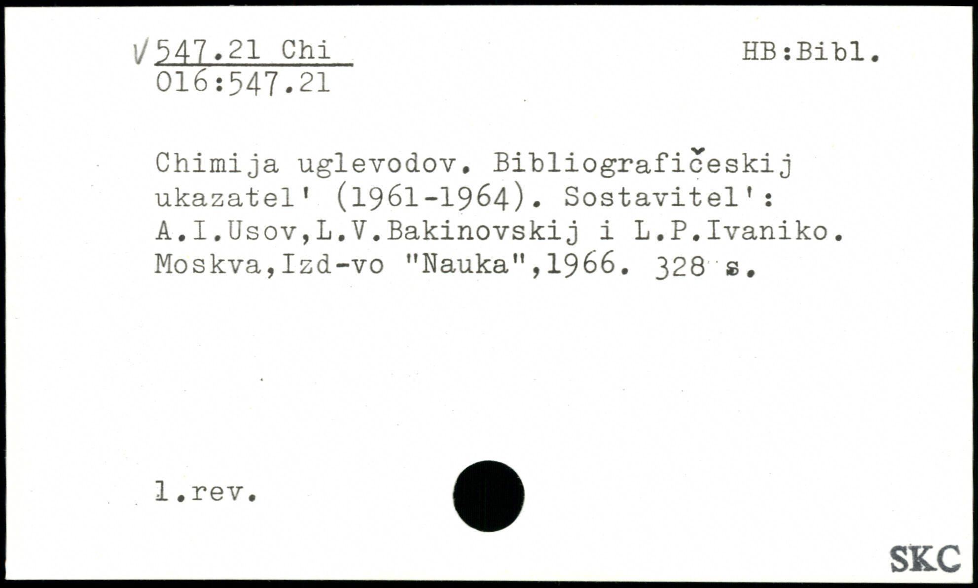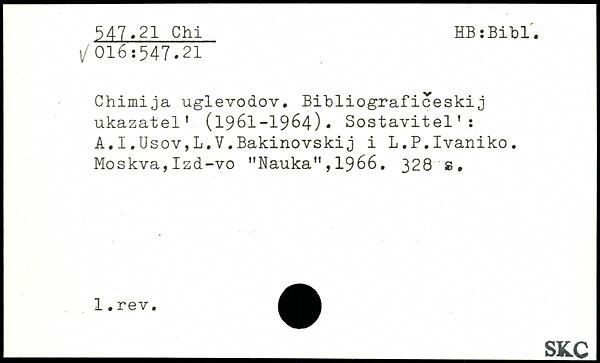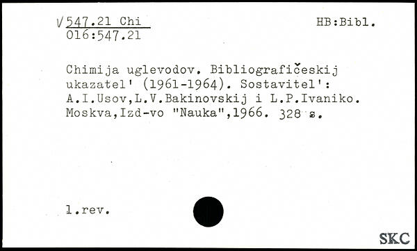 Chimija uglevodov. Bibliograficeskij ukazatel' (1961-1964). Sostavitel’: A.I.Usov,L.V.Bakinovskij i L.P.Ivaniko. Moskva,Izd-vo "Nauka",1966.