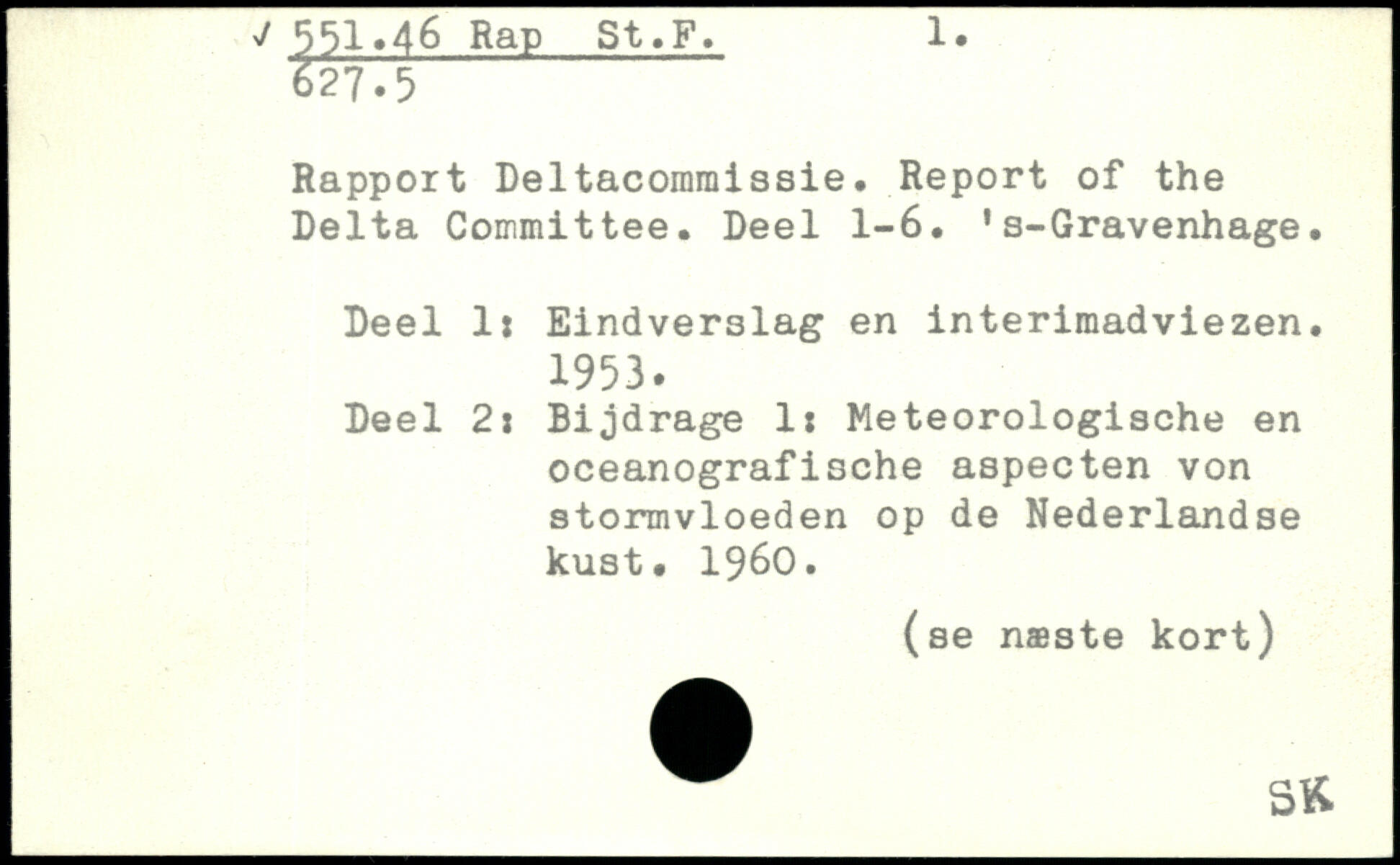 Rapport Deltacommissie. Report of the Delta Committee. Deel 1-6. 's-Gravenhage. Deel 1: Eindverslag en interimadviezen. 1953. Deel 2: Bijdrage 1: Meteorologische en oceanografische aspecten von stormvloeden op de Nederlandse kust. 1960.