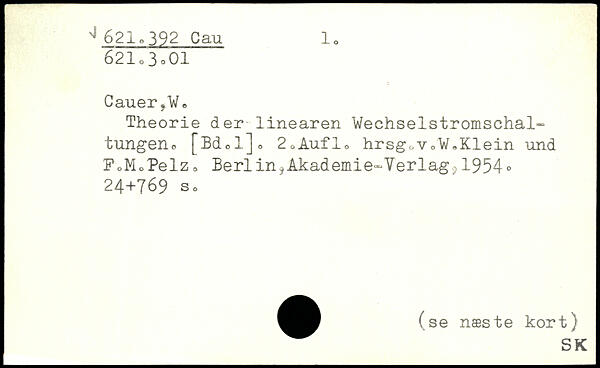 Cauer?Wo Theorie der linearen Wechseistromschal“ tungeno [Mol] o 2 , Auf lo hrsgoVoWoKlein und FoMoPelzo Berlin,, Akademie-Ver lag, 1954.