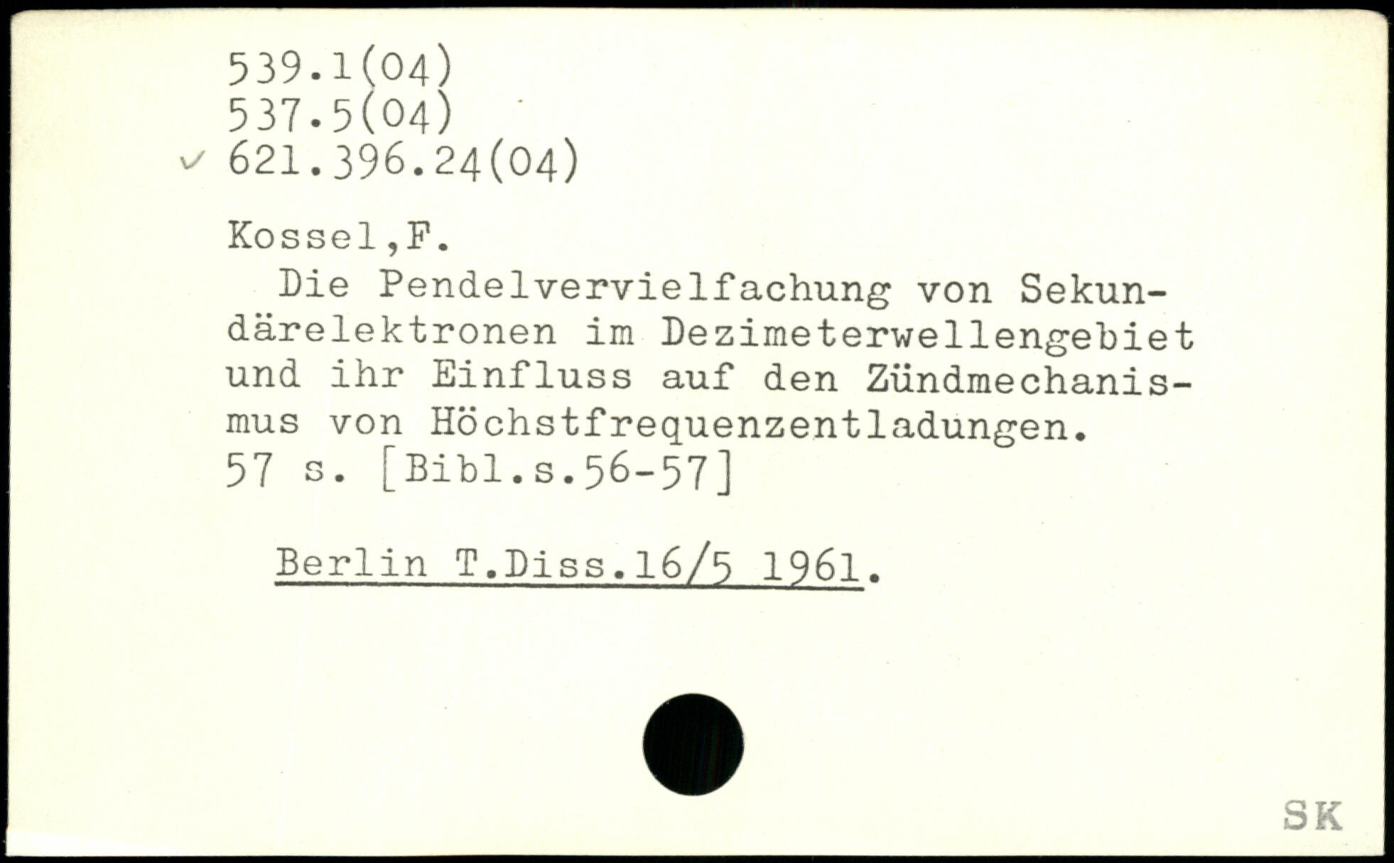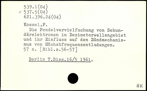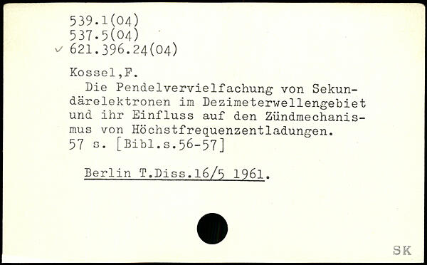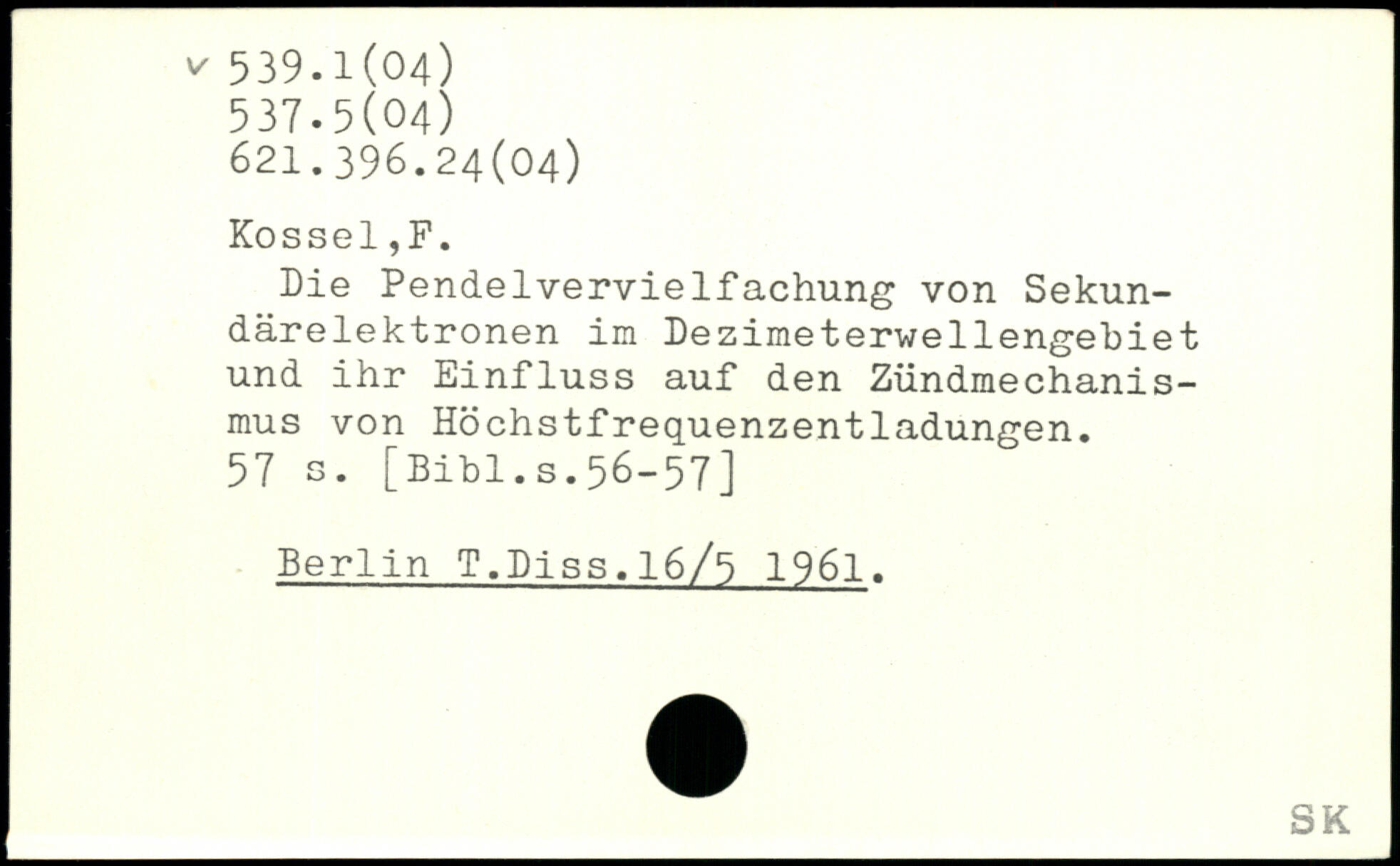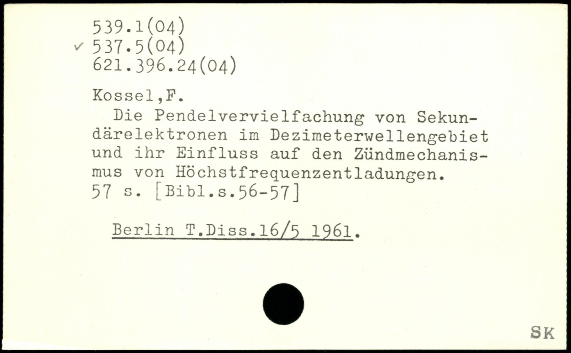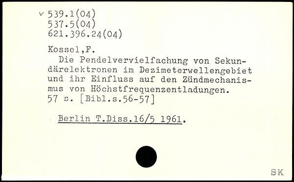 Die Pendelvervielfachung von Sekundärelektronen im Dezimeterwellengebiet und ihr Einfluss auf den Zündmechanismus von Höchstfrequenzentladungen.