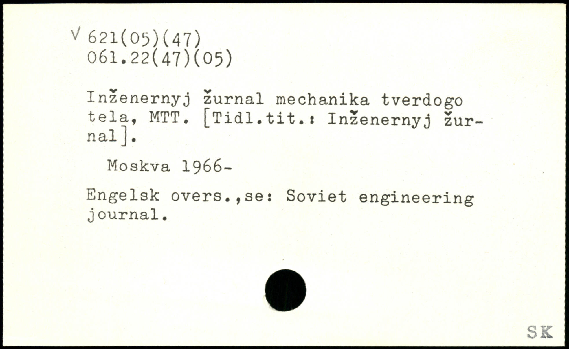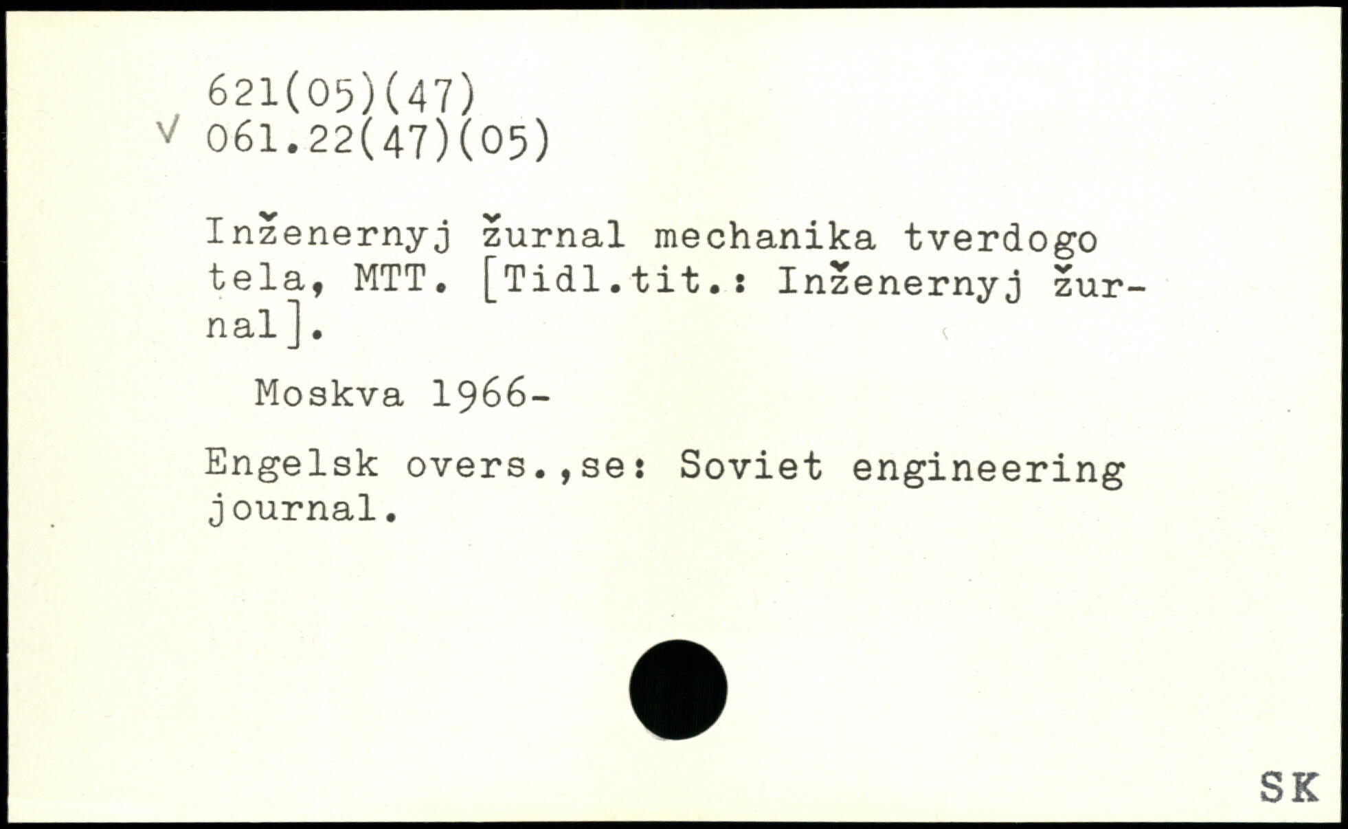 Inzenernyj zurnal mechanika tverdogo tela, MTT. [Tidl.tit.s Inzenernyj zurnal ].