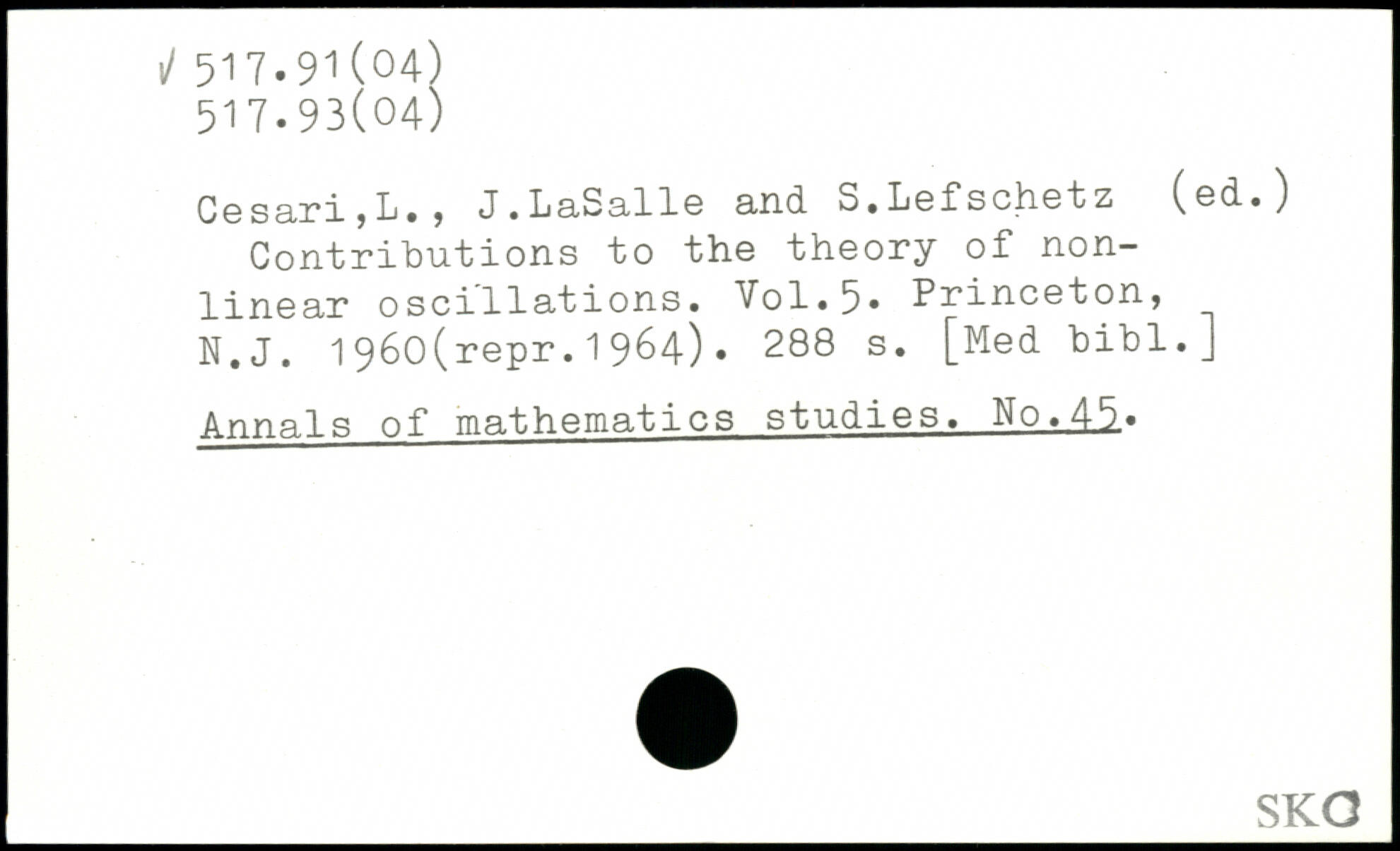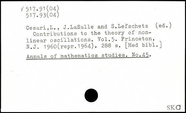 C ø s ari , L. , J. L aS all© and. S.Løfschetz (ød.) Contributions to the theory of nonlinear oscillations.