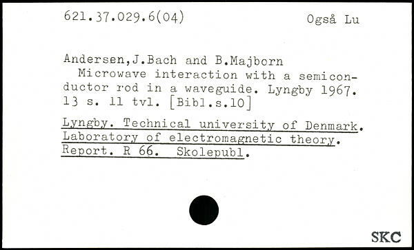 Andersen,J.Bach and B.Majborn Microwave interaction with a semiconductor rod in a waveguide. Lyngby 1967.