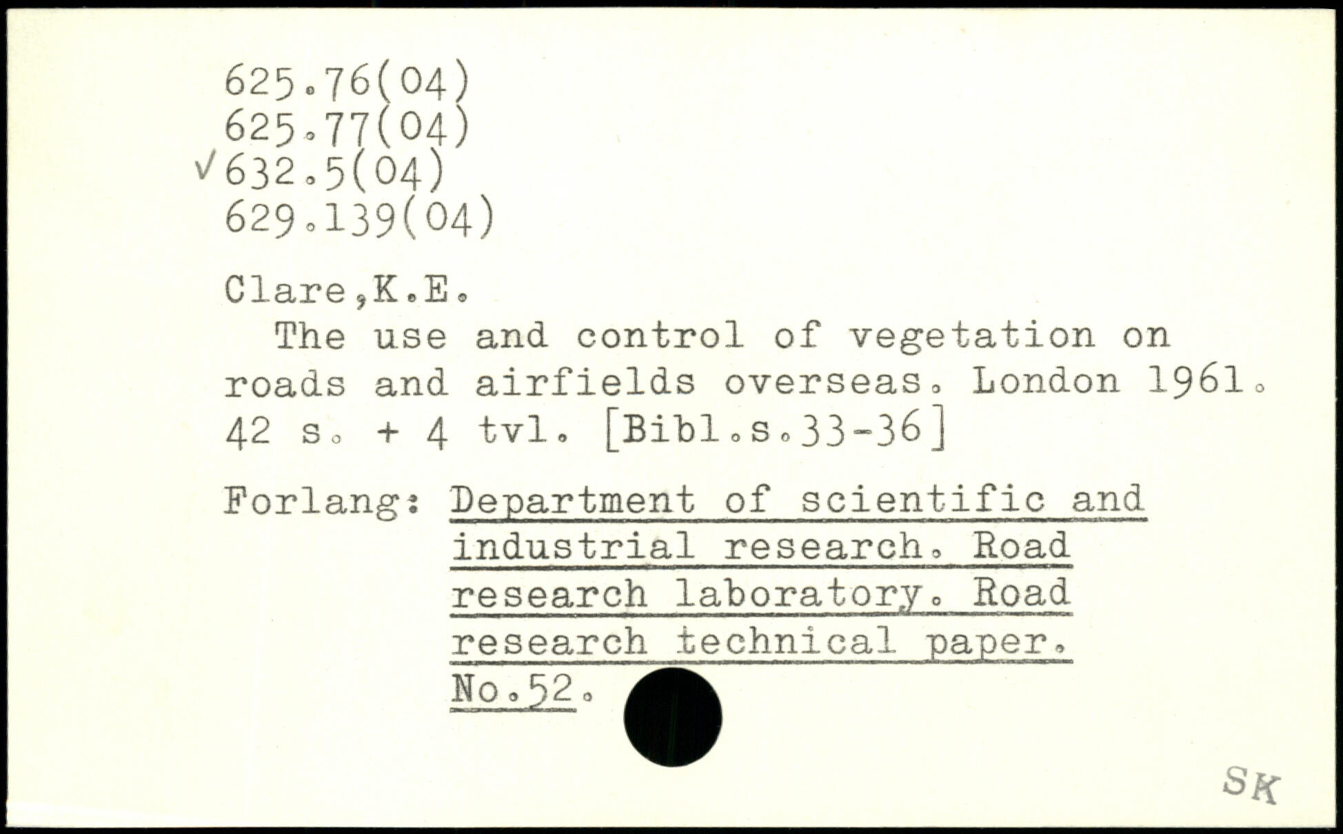 The use and control of vegetation on roads and airfields overseas, London