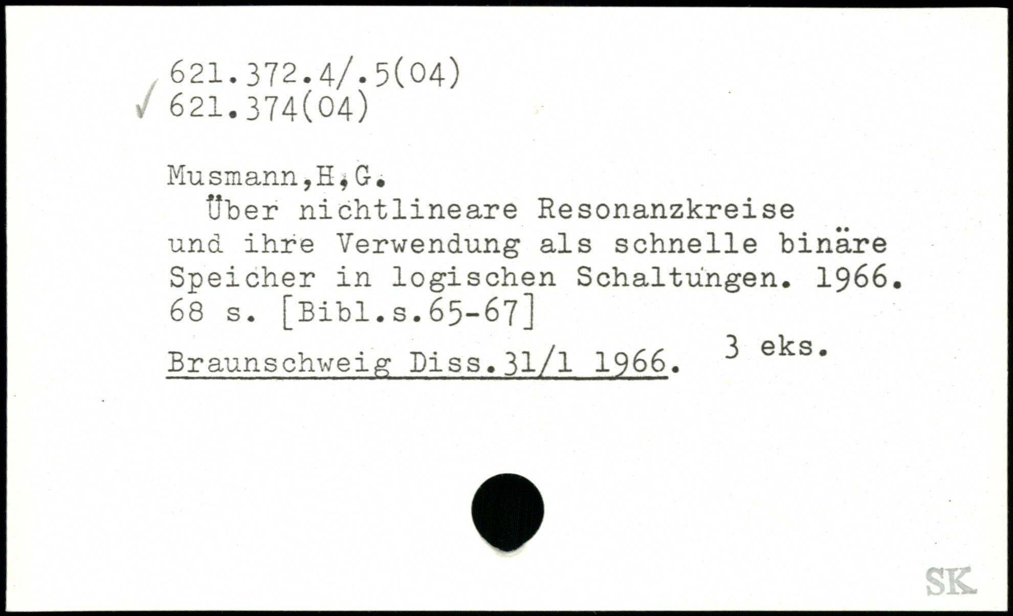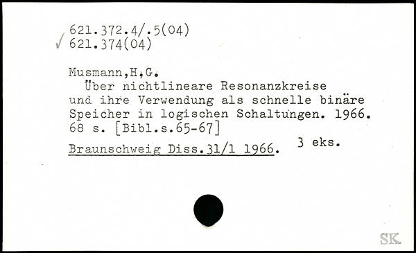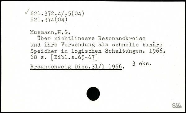 Über nichtlineare Resonanzkreise und ihre Verwendung als schnelle binäre Speicher in logischen Schaltungen. 1966.