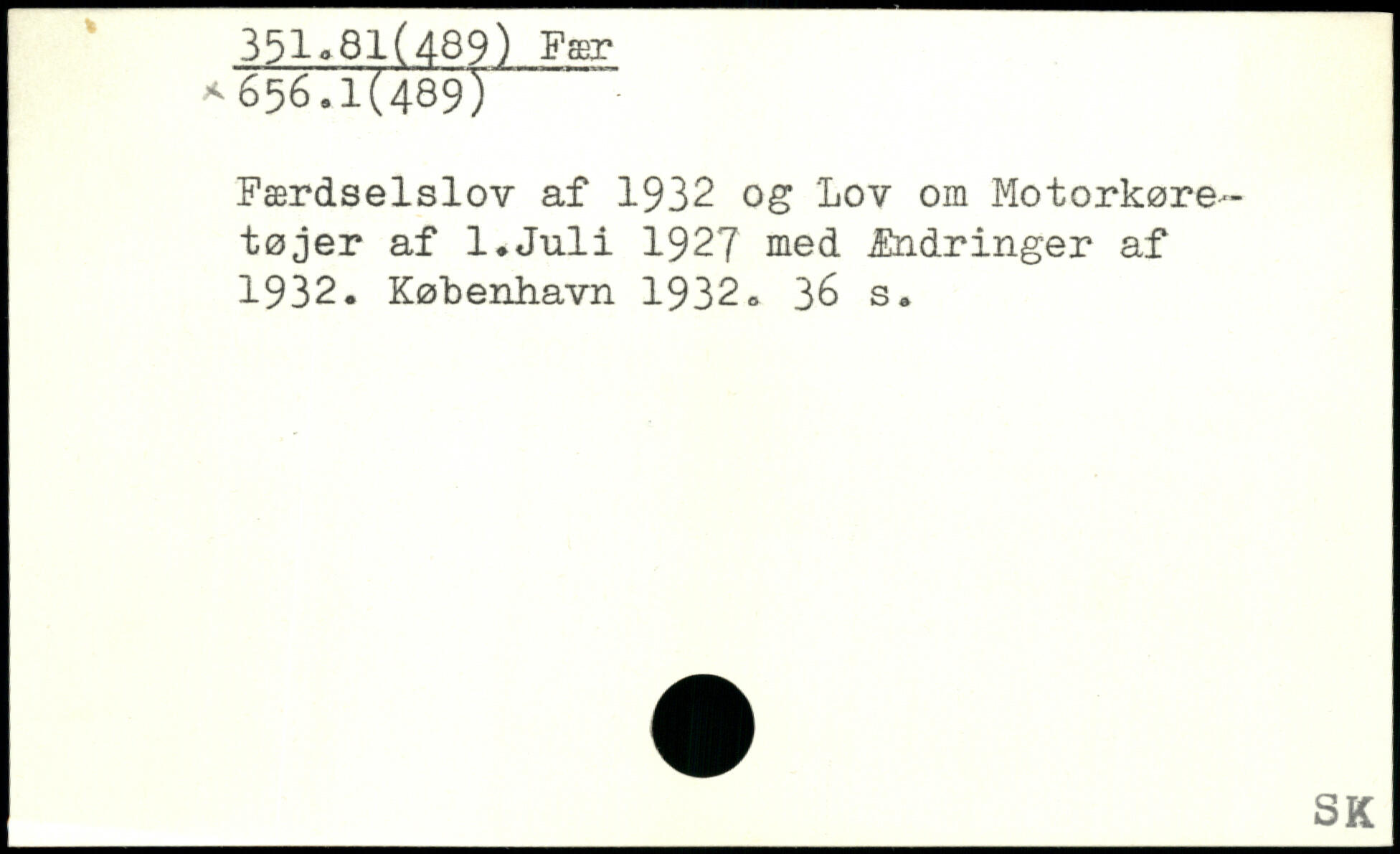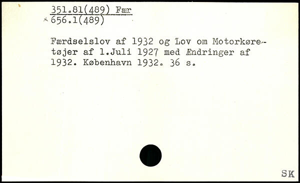 Færdselslov af 1932 og Lov om Motorkøretøjer af l.Juli 1927 med Ændringer af 1932.