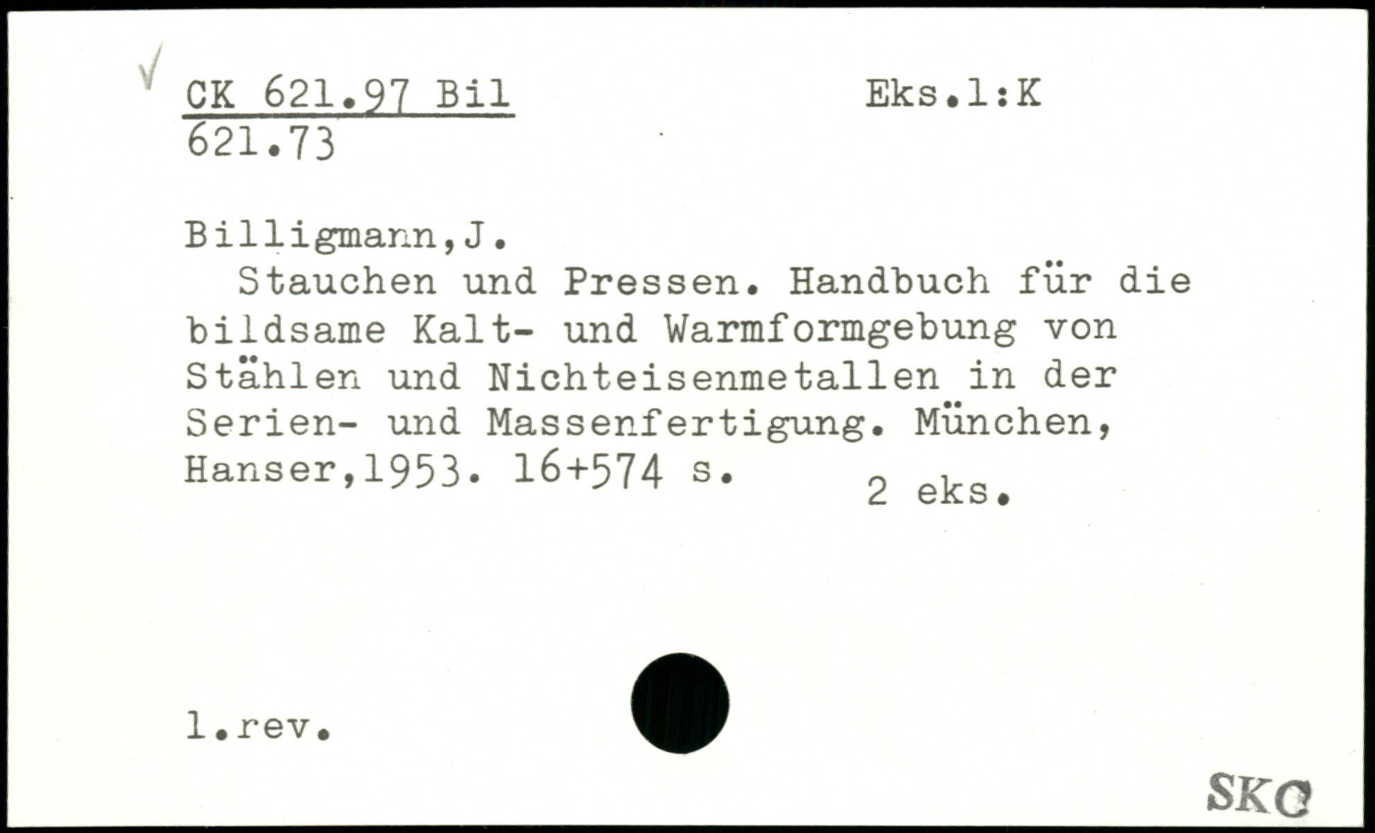 Stauchen und Pressen. Handbuch für die bildsame Kalt- und Warmformgebung von Stählen und Nichteisenmetallen in der Serien- und Masser.fertigung.