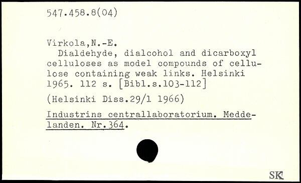 Dialdehyde, dialcohol and dicarboxyl celluloses as model compounds of cellulose containing weak links.