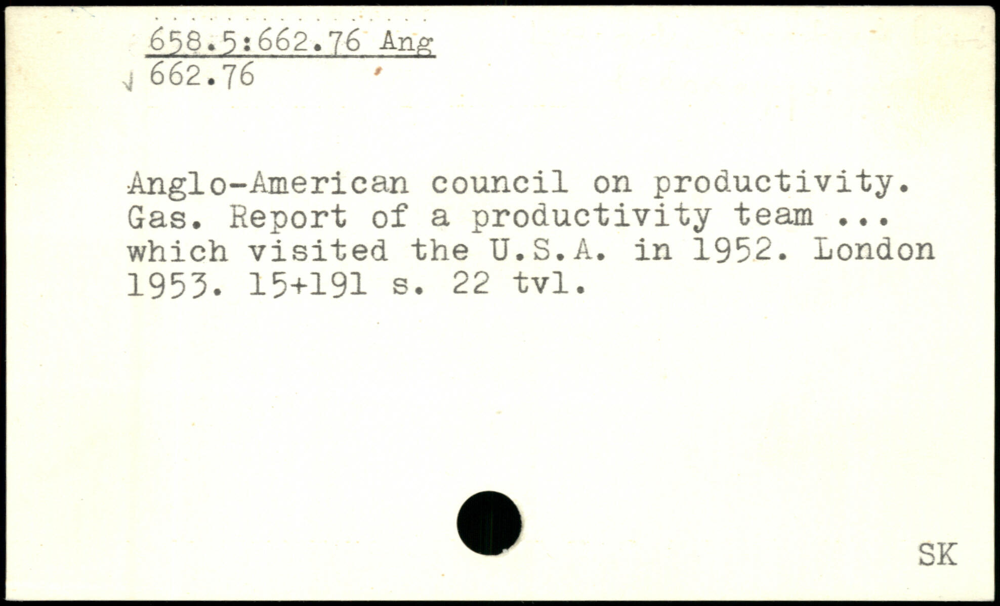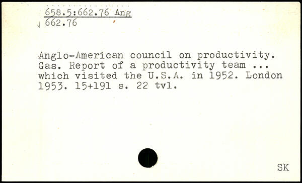 Anglo-American council on productivity. Gas. Report of a productivity team ... which visited the U.S.A. in 1952.