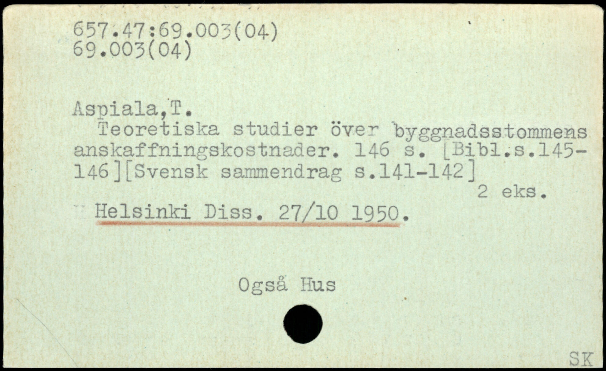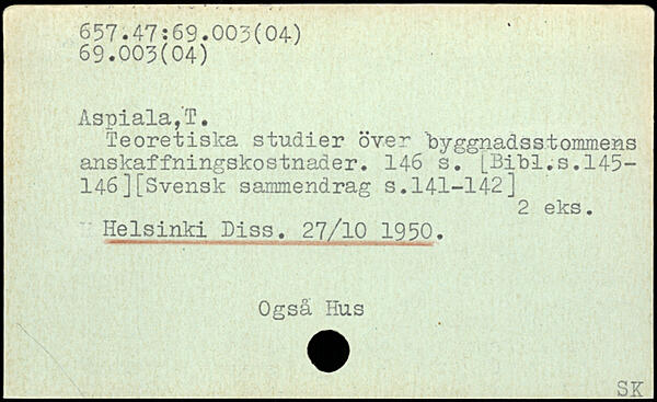 Teoretiska studier över byggnadsstommens anskaffningskostnader.