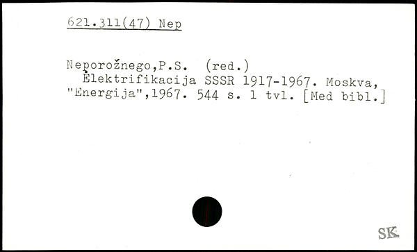 Neçoroznego,P.S. (red.) Elektrifikacija SSSR 1917~1967. Moskva, "Energija”,1967.