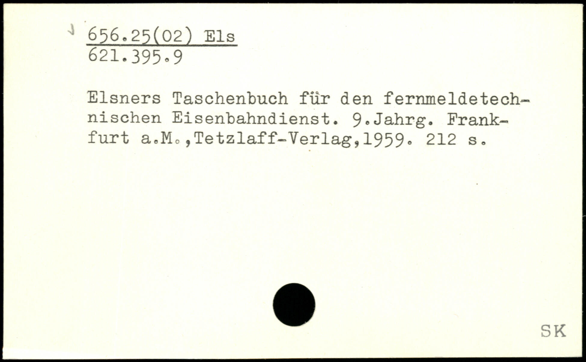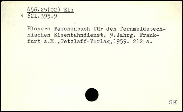 Elsners Taschenbuch für den fernmeldetechnischen Eisenbahndienst. 9,Jahrg. Frankfurt a.