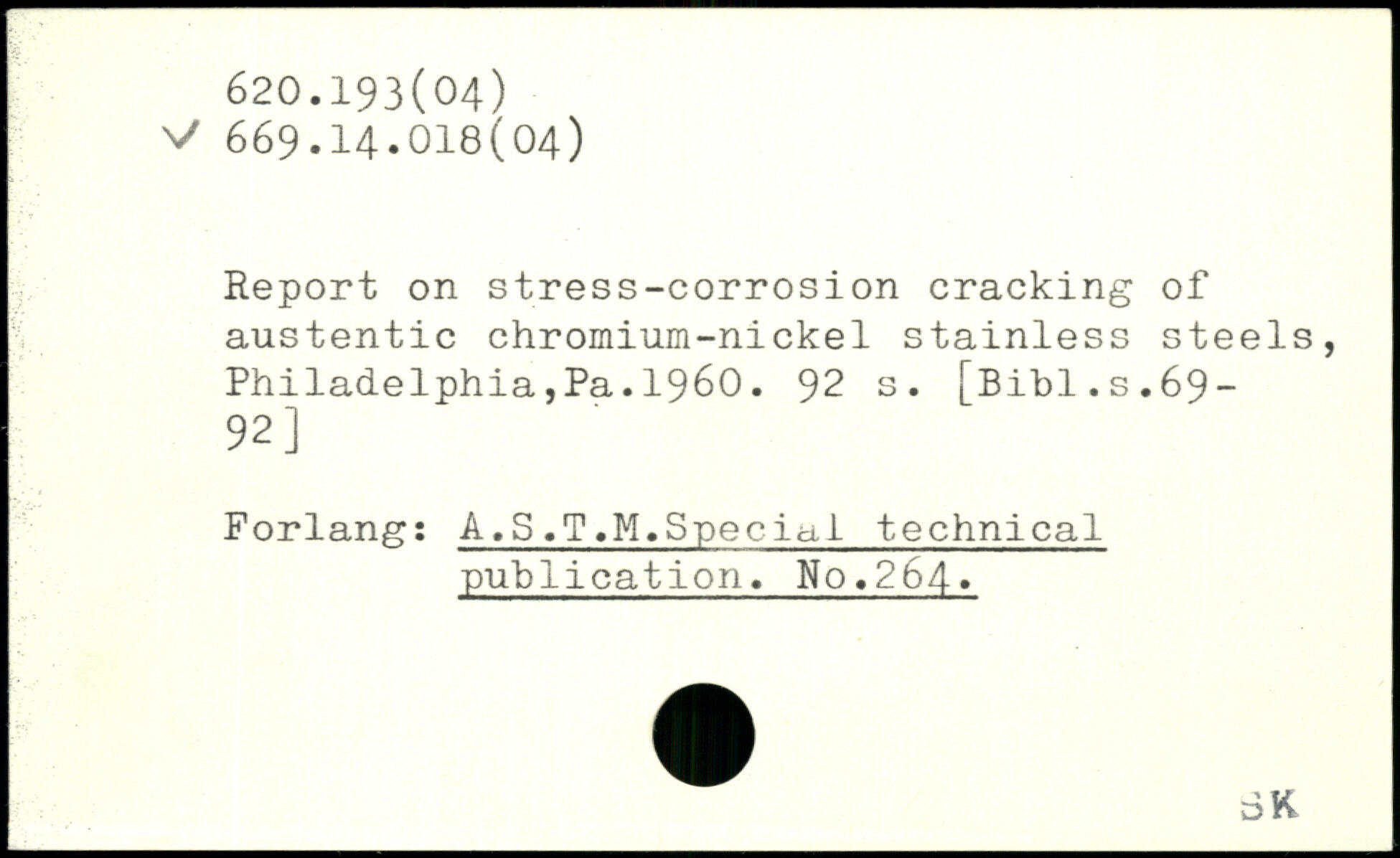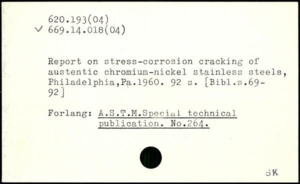 Report on stress-corrosion cracking of austentic chromium-nickel stainless steels, Philadelphia,Pa.1960.